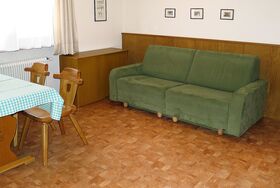Dr. Otto Schuler, 2-Zimmer-Wohnung 55 m2 im 2. Stock. Rustikal eingerichtet: Wohn-/Schlafzimmer mit 1 Doppeldiwanbetten, Esstisch und Kabel-TV. 1 abgeschrägtes Zimmer mit 1 Doppelbett und Dusche/WC. Offene Küche (Geschirrspüler, 4 Glaskeramikplatten, Toaster, elektrische Kaffeemaschine). Dusche/WC. Heizung. Teppichboden. Zur Verfügung: Internet (Wireless LAN, gratis). Parkplatz (1 Auto). Bitte beachten: Nichtraucher-Unterkunft. Rauchmelder.