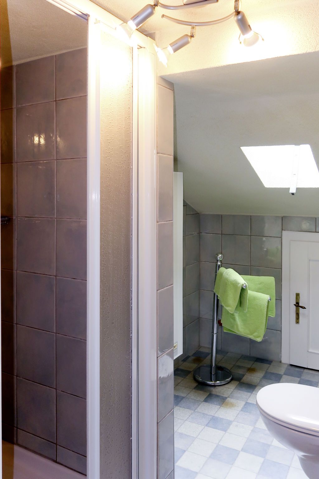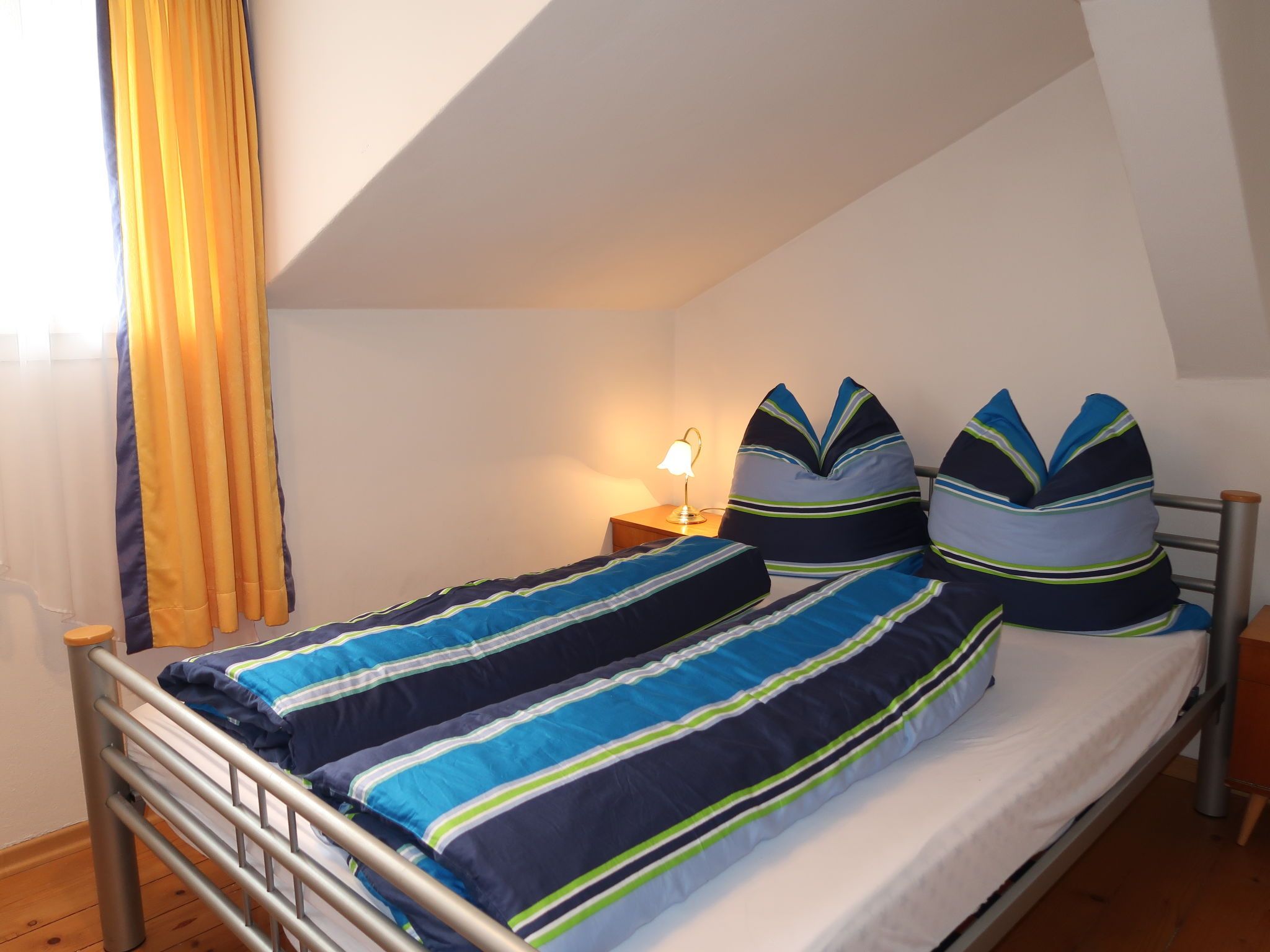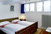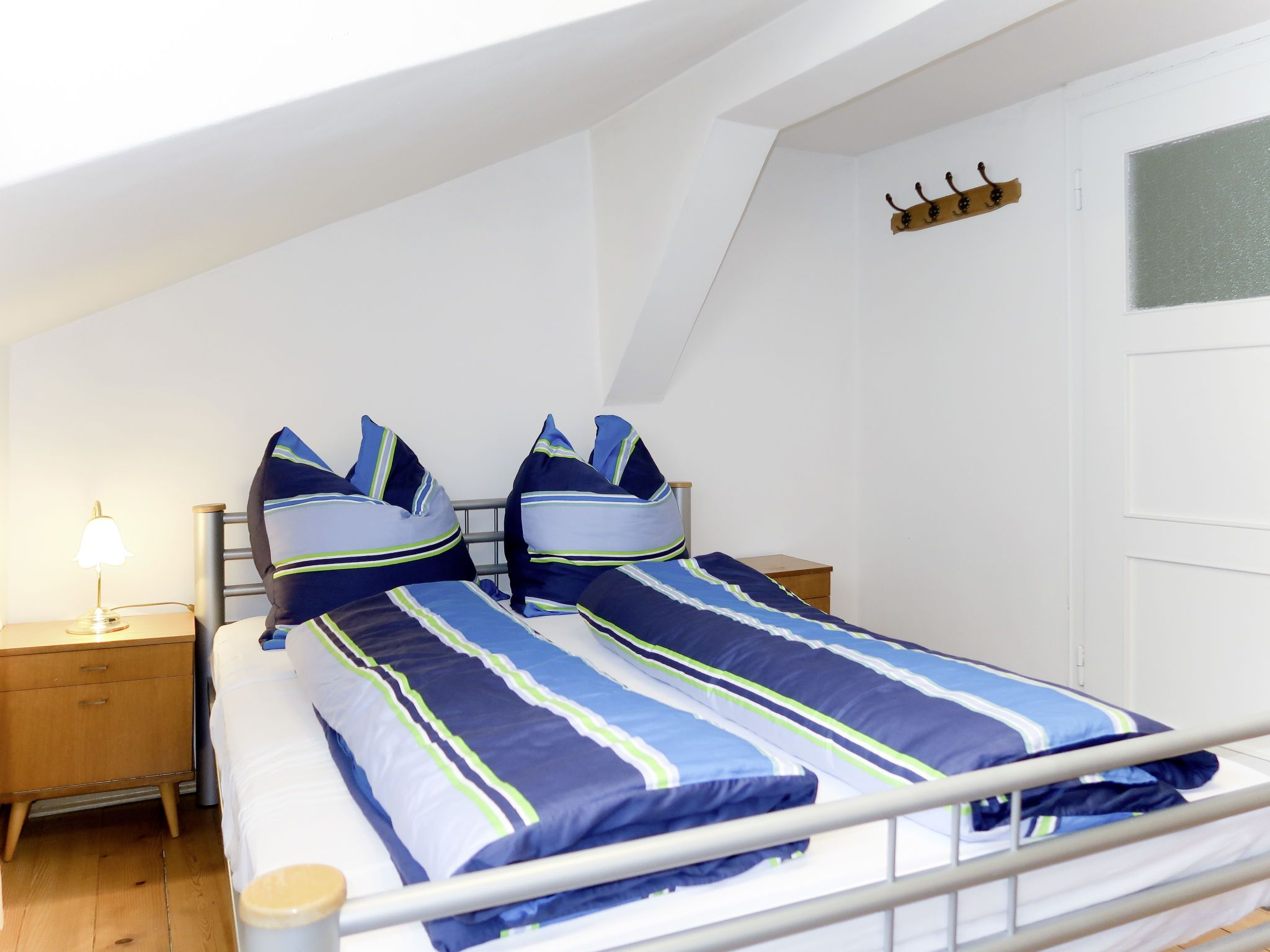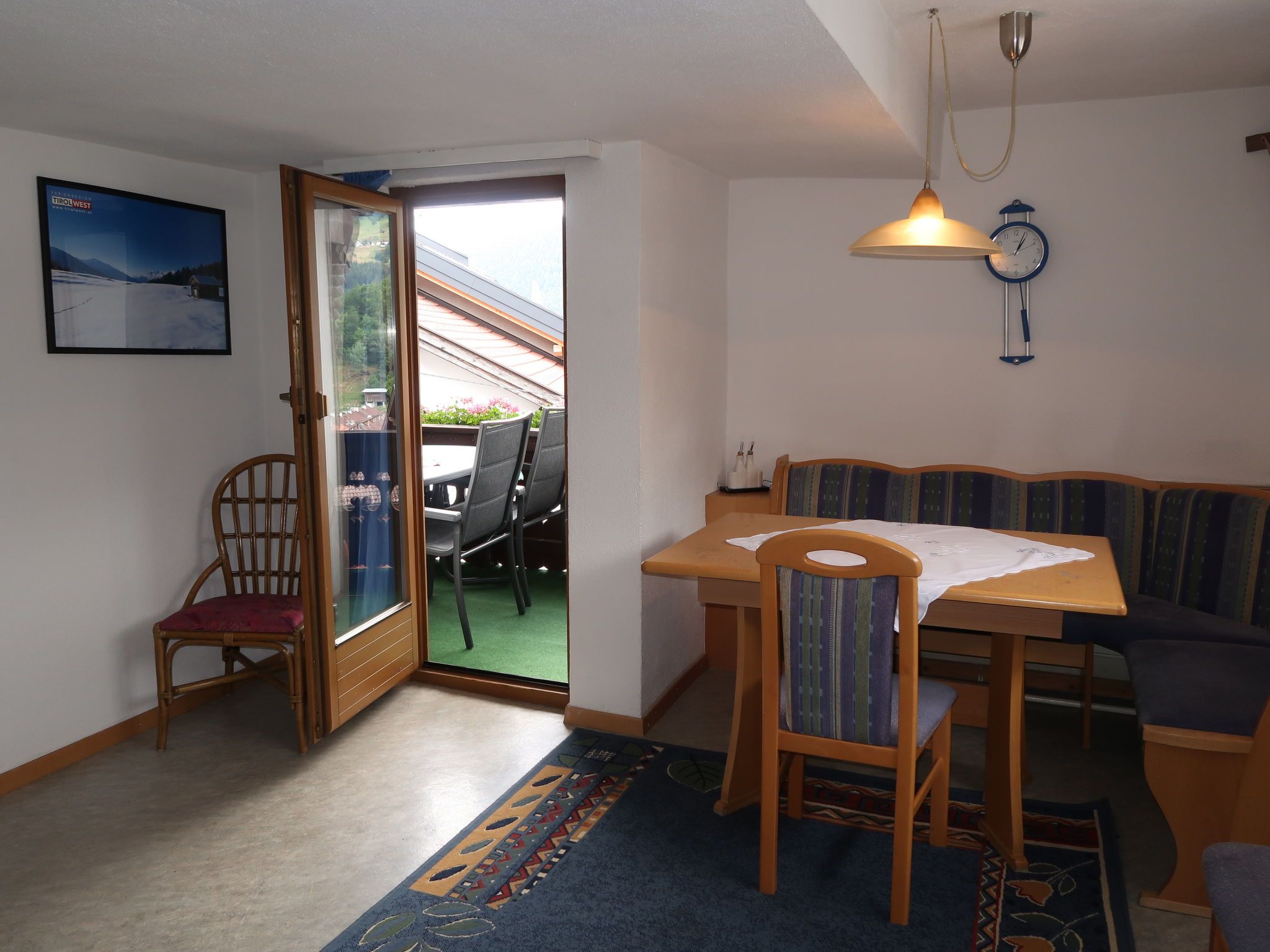 Huber, 4-Zimmer-Wohnung 60 m2 im 2. Stock. Einfach eingerichtet: Wohnzimmer, Deckenhöhe 195 cm, niedrige Türrahmen, Höhe 175 cm mit Sat-TV. Ausgang zum Balkon. 1 abgeschrägtes Zimmer mit 1 franz. Bett. 1 Doppelzimmer. 1 Zimmer mit 1 Bett. Küche (Backofen, Geschirrspüler, 4 Glaskeramikplatten, Toaster, Wasserkocher, elektrische Kaffeemaschine) mit Essecke. Ausgang zum Balkon. Dusche/WC. Ölheizung. Holzdielenboden. Balkon. Balkonmöbel, Abstellkammer. Zur Verfügung: Internet (Wireless LAN, gratis). Parkplatz (1 Auto).