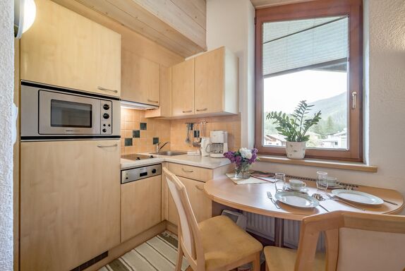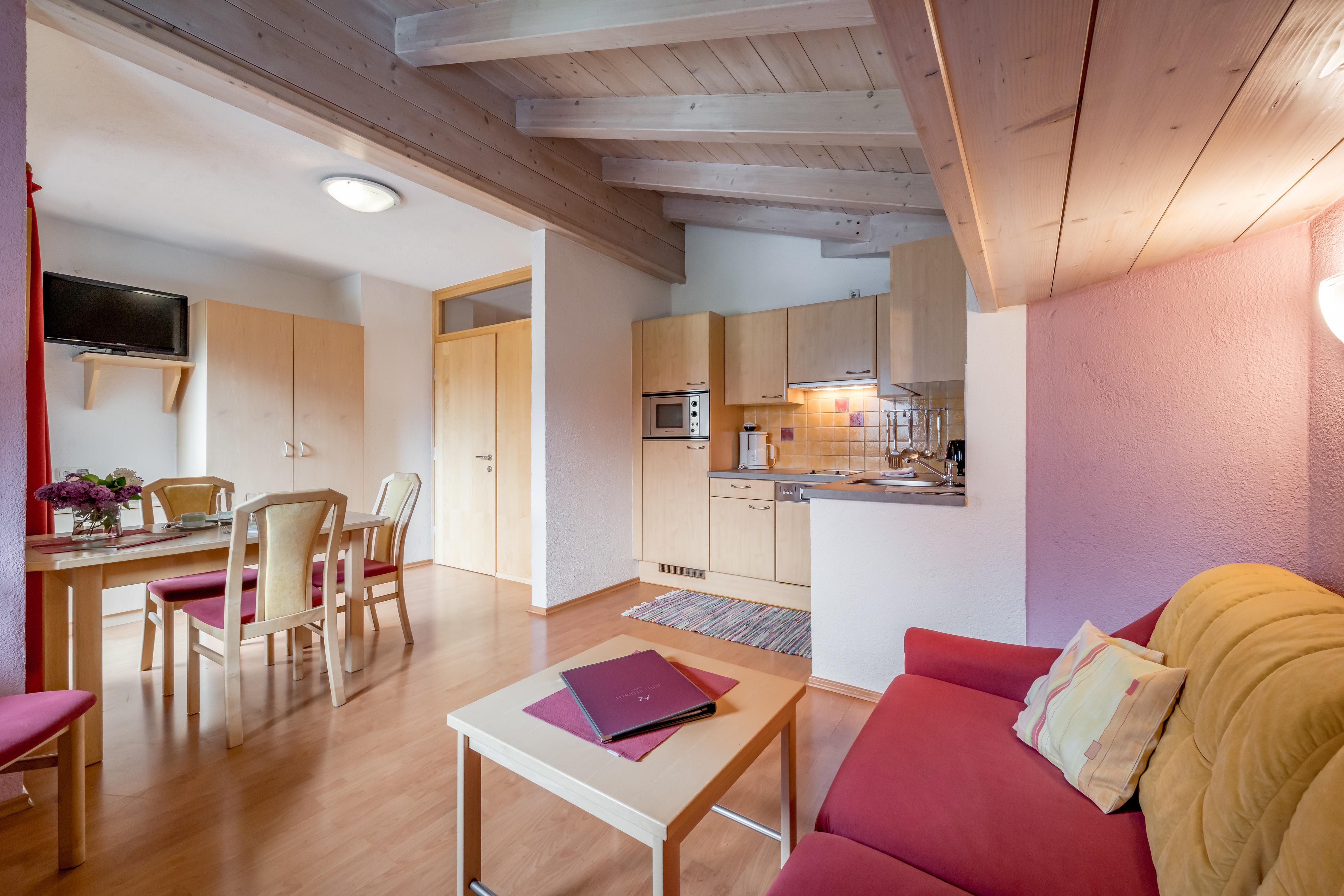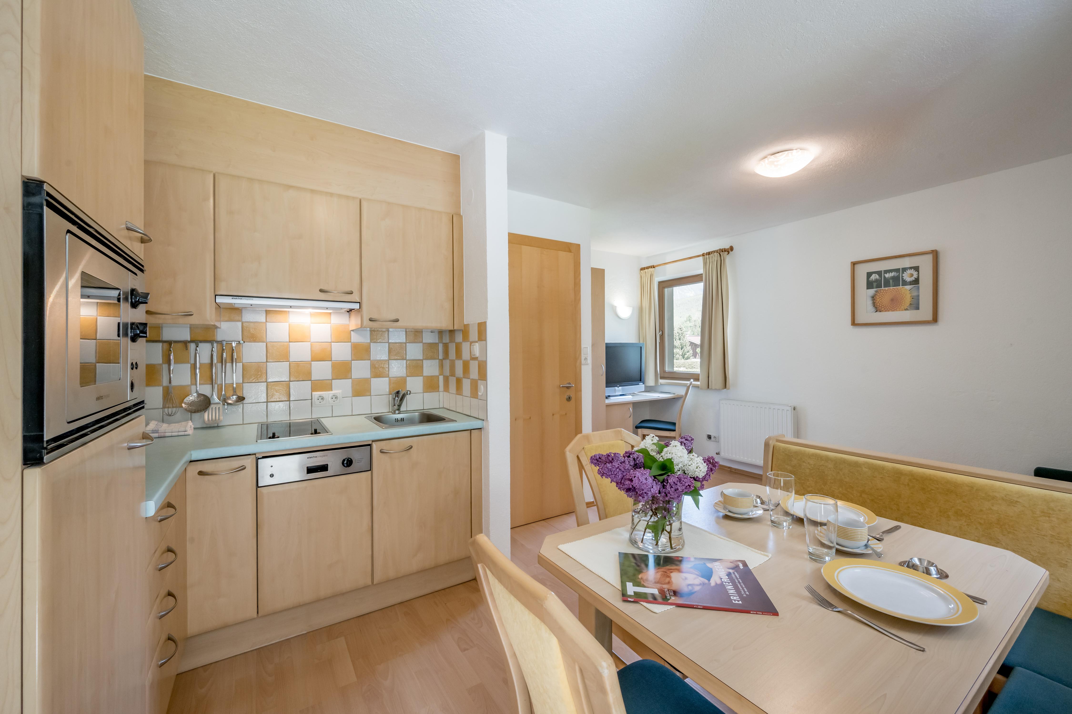 Ihr Appartement Arnika mit ca. 37 m² befindet sich im 2. Stock und verfügt über: 1 Doppelzimmer, 1 Wohnküche mit Essecke, Safe, Minibar, TV und Radio, Hochgeschwindigkeits-Internetanschluss und einer Couch. 1 Badezimmer mit DU/WC und Whirlwanne, Haarföhn, Bademantel und ein 4 m² Ostbalkon ergänzen die Wohnung.