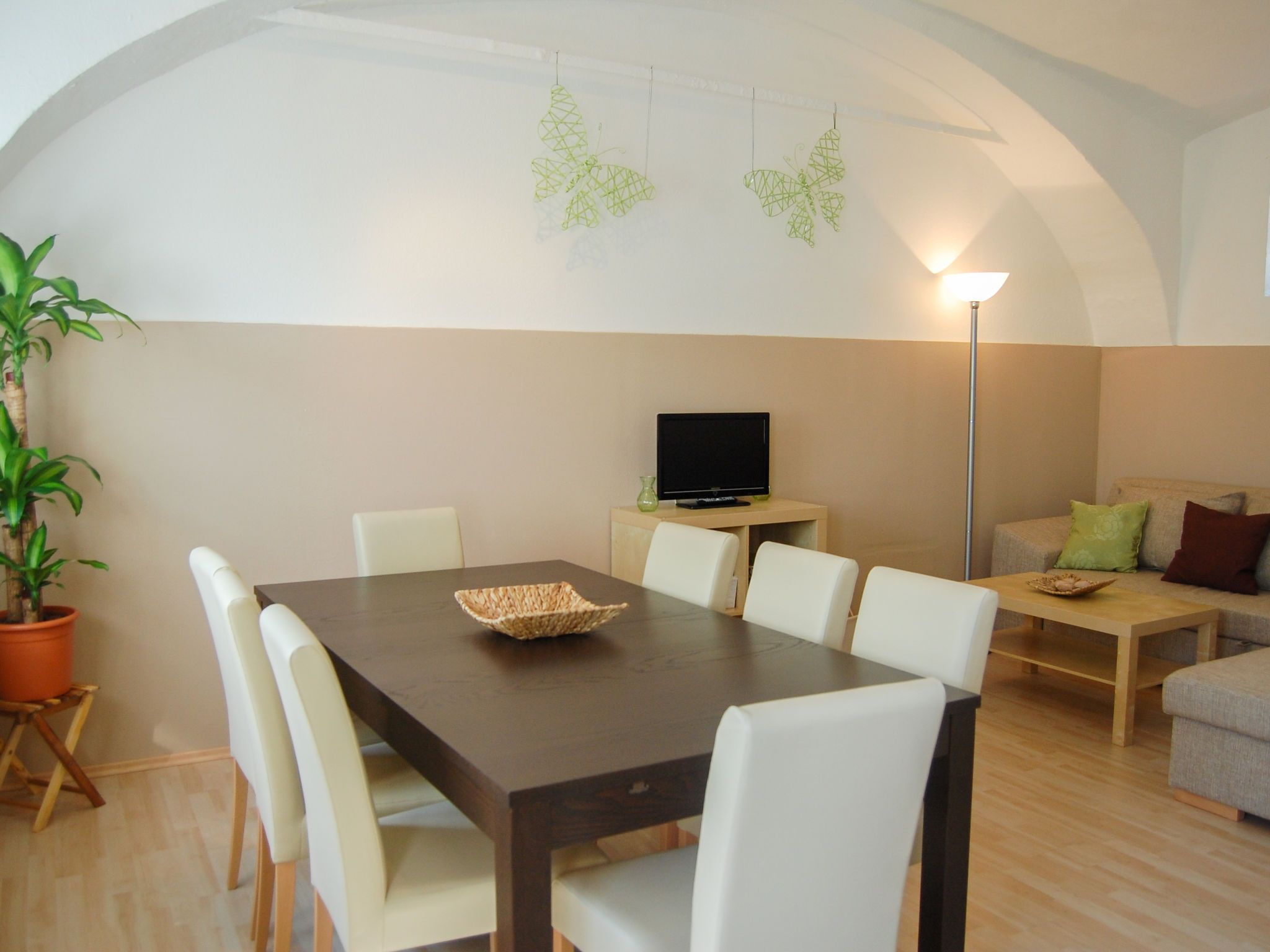 Hofgasse, 3-Zimmer-Reihenhaus 80 m2 auf 2 Stockwerken. Teilweise abgeschrägt, stilvoll und gemütlich eingerichtet: grosses Wohn-/Schlafzimmer mit 1 Doppeldiwanbett, Esstisch und Kabel-TV. Küche (4 Kochplatten, Backofen, Toaster, Mikrowelle, elektrische Kaffeemaschine). Dusche, sep. WC. Obergeschoss: 1 Zimmer mit 1 Doppelbett und 1 Ausziehbett (2 Pers.). 1 Zimmer mit 1 Doppelbett und Dusche/WC. E-Heizung. Zur Verfügung: Kinderhochstuhl, Babybett. Internet (Wireless LAN, gratis). Parkplatz (2 Autos). Bitte beachten: Nichtraucher-Haus. Rauchmelder. Flexibilität bei der Bettenaufteilung: Es stehen mehr Schlafmöglichkeiten zur Verfügung als die maximal zugelassene Personenzahl, diese darf dennoch nicht überschritten werden.