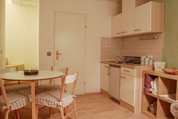 Hofgasse (MOE111), 2-Zimmer-Wohnung 40 m2 auf 2 Stockwerken. Teilweise abgeschrägt, stilvoll und gemütlich eingerichtet: Wohn-/Esszimmer mit Esstisch, Essecke und Kabel-TV. Kochnische (2 Kochplatten, Toaster, Mikrowelle, elektrische Kaffeemaschine). Dusche, sep. WC. Obergeschoss: 1 offenes Zimmer mit Vorhang mit 1 Bett und 1 Doppelbett. E-Heizung. Zur Verfügung: Kinderhochstuhl, Babybett. Internet (Wireless LAN). Parkplatz (1 Auto). Bitte beachten: Nichtraucher-Haus. Rauchmelder.