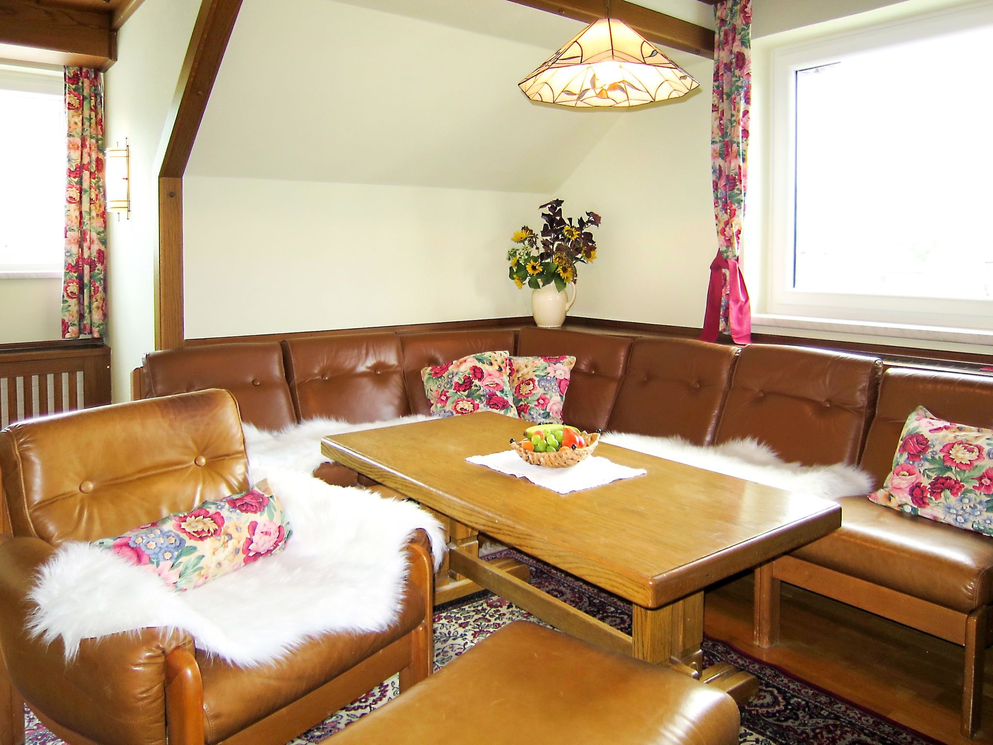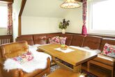 Moser, 3-Zimmer-Wohnung 92 m2 im 2. Stock. Teilweise abgeschrägt, rustikal eingerichtet: Wohnzimmer mit Sat-TV. 1 Zimmer mit 1 Doppelbett und Sat-TV. 1 Zimmer mit 2 Betten. Küche (Backofen, Geschirrspüler, 4 Glaskeramikplatten, Wasserkocher, elektrische Kaffeemaschine) mit Esstisch und Essecke. Bad/Dusche, sep. WC. Heizung. Teppichboden. Zur Verfügung: Kinderhochstuhl, Babybett. Internet (Wireless LAN, gratis). Bitte beachten: Nichtraucher-Haus. Rauchmelder. Bei Belegung mit weniger Personen als der maximalen Personenzahl stehen nicht alle Wohneinheiten zur Verfügung.