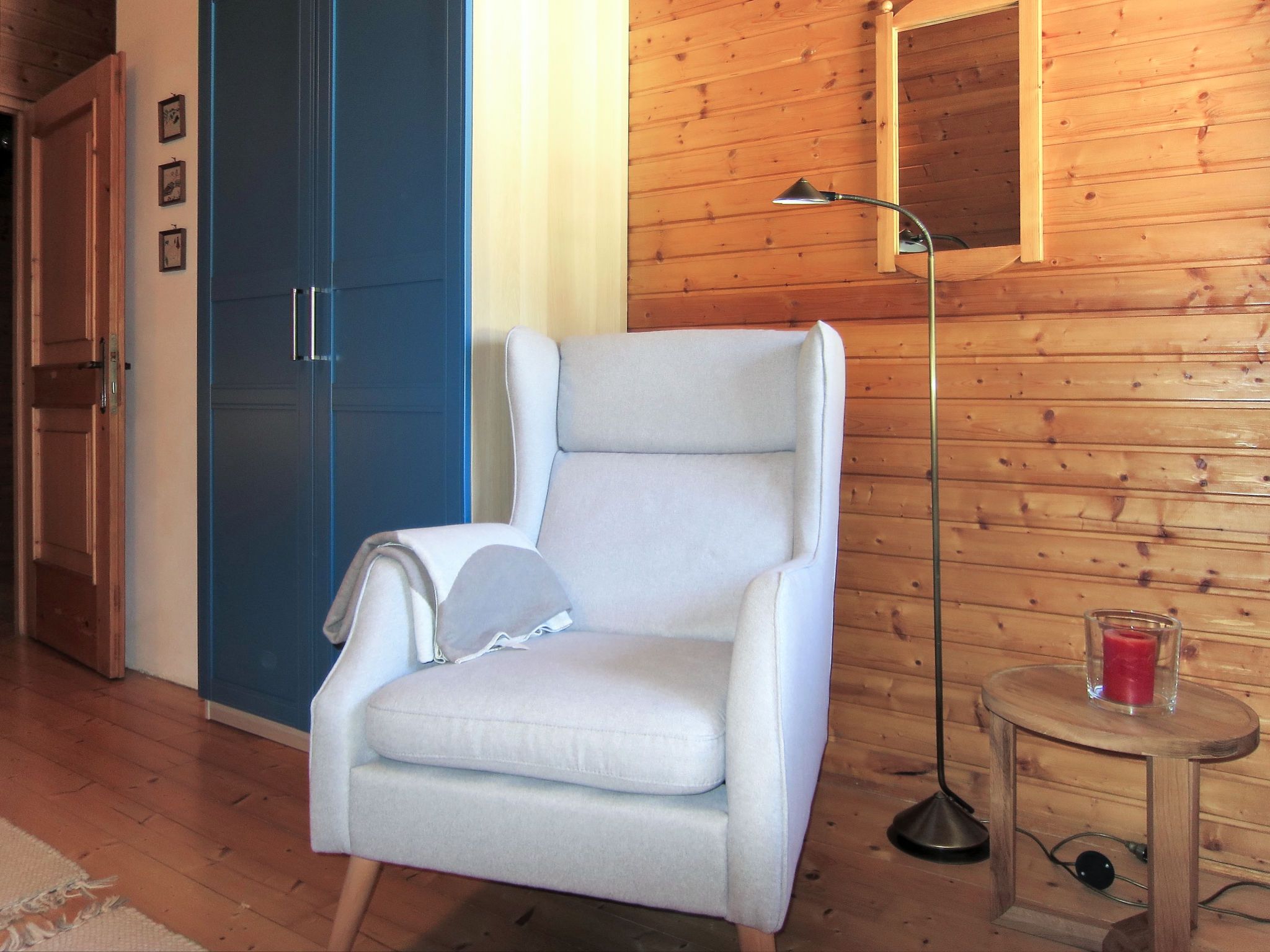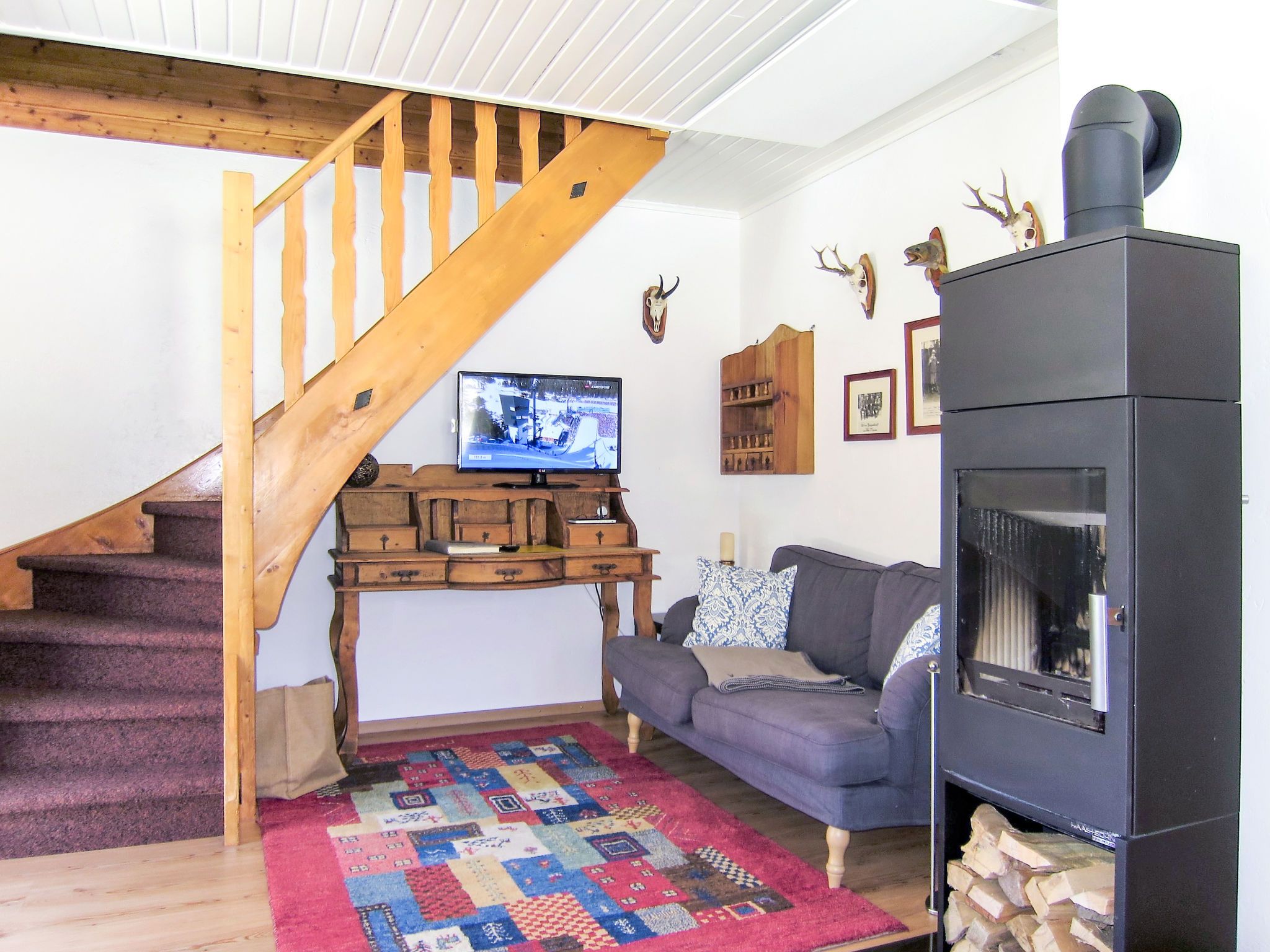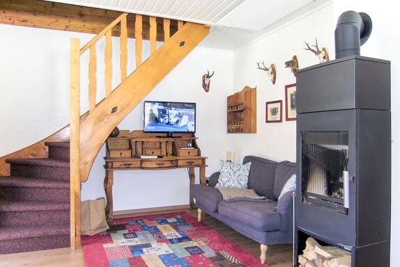 Fischerhütte, 4-Zimmer-Doppelhaushälfte 85 m2 auf 2 Stockwerken. Teilweise abgeschrägt, renoviert im Jahre 2018, gemütlich und mit viel Holz eingerichtet: Wohnzimmer mit Schwedenofen, Esstisch, Essecke und Sat-TV. 1 Zimmer mit 1 Doppelbett. Kochnische (Backofen, Geschirrspüler, 4 Glaskeramikplatten, Toaster, Wasserkocher, elektrische Kaffeemaschine). Dusche, sep. WC. Obergeschoss: 1 abgeschrägtes Zimmer mit 1 Doppelbett. 1 abgeschrägtes Zimmer mit 2 Betten. Dusche/WC. Heizung. Terrasse. Terrassenmöbel, Gartengrill (mobil), Liegestühle (4). Sicht auf die Landschaft. Zur Verfügung: Internet (WLAN, gratis). Bitte beachten: Maximal 2 Haustiere/Hunde erlaubt. Rauchmelder.