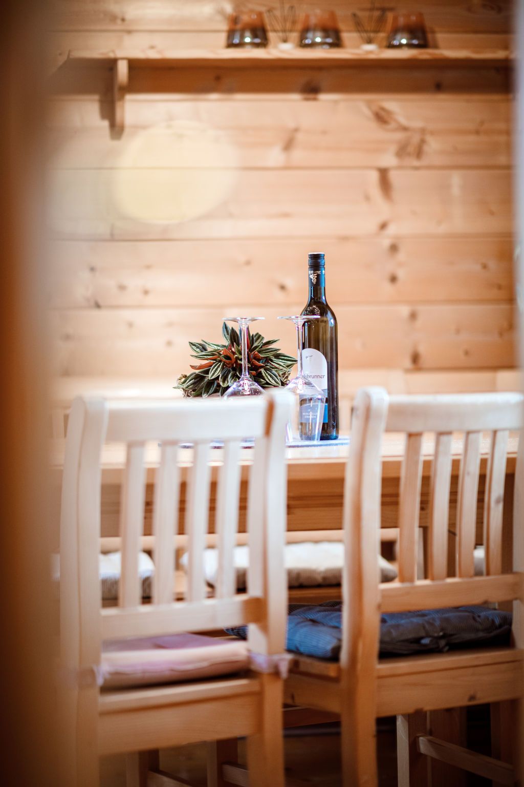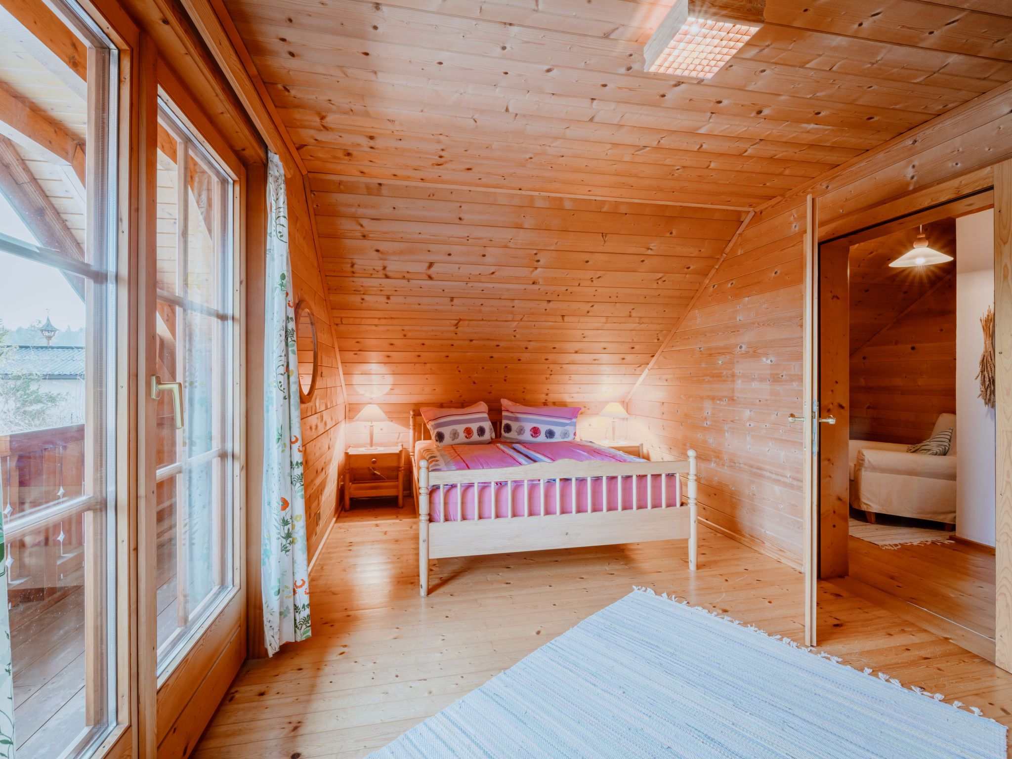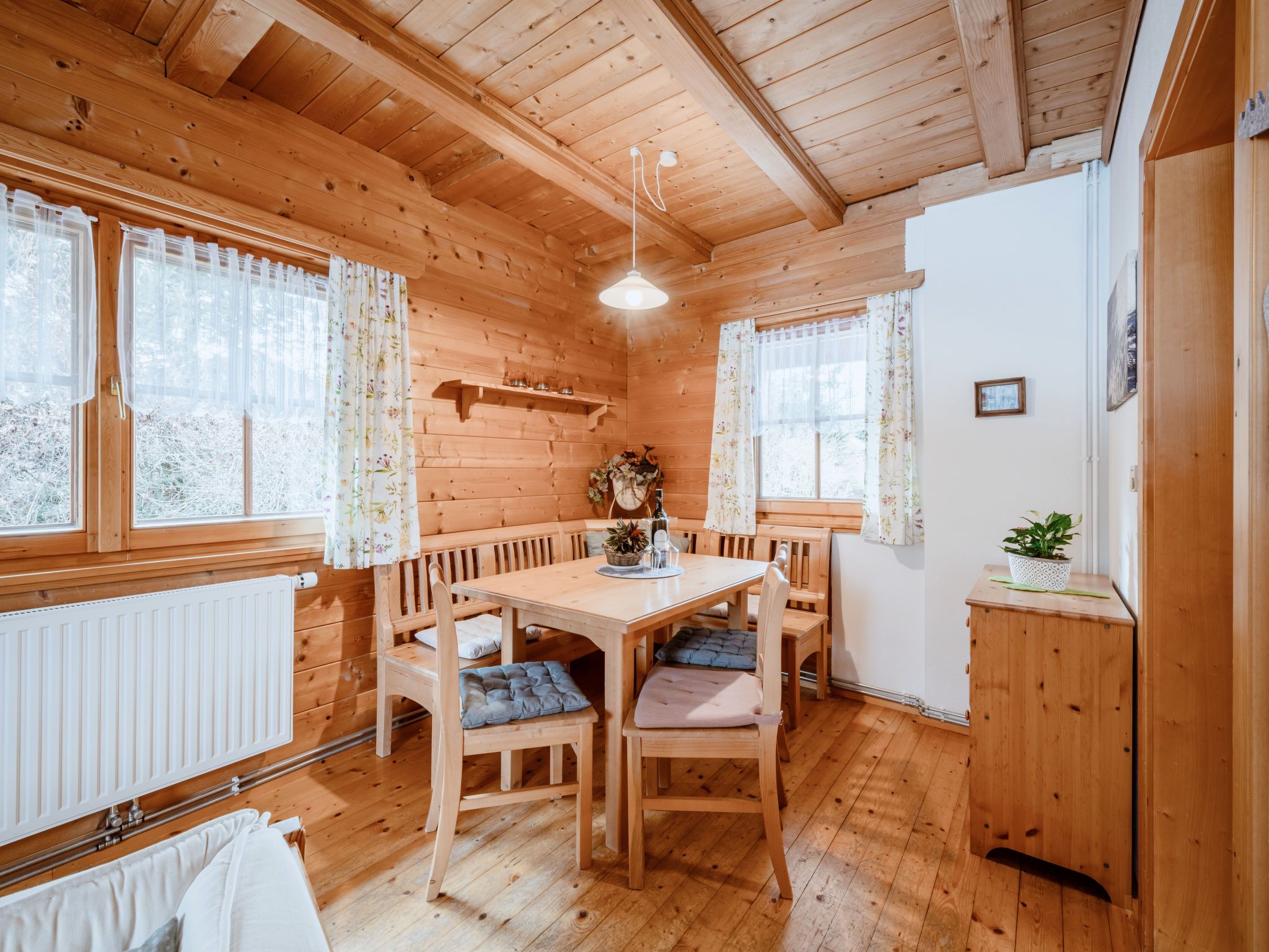 Simons Blockhütte, 4-Zimmer-Chalet 120 m2 auf 3 Stockwerken. Teilweise renoviert im Jahre 2018, sehr gemütlich und mit viel Holz eingerichtet: Wohnzimmer mit Esstisch, Essecke, Sat-TV und Stereoanlage. 1 Zimmer mit 1 Doppelbett. Küche (Backofen, Geschirrspüler, 4 Glaskeramikplatten, Toaster, Wasserkocher, Mikrowelle, elektrische Kaffeemaschine). Dusche/WC. Unteres Geschoss: Dusche/WC. Obergeschoss: 1 abgeschrägtes Zimmer, Deckenhöhe 70 - 250 cm mit 2 Betten. Ausgang zum Balkon. 1 abgeschrägtes Zimmer, Deckenhöhe 70 - 250 cm mit 1 Doppelbett. Ausgang zum Balkon. Holzheizung. Holzdielenboden. 2 Balkone, Terrasse überdacht. Terrassenmöbel, Gartengrill (mobil), Abstellkammer. Sehr schöne Panoramasicht auf die Berge und das Tal. Zur Verfügung: Internet (WLAN, gratis). Bitte beachten: Nichtraucher-Haus. Maximal 1 Haustier/Hund erlaubt. Rauchmelder. Hinweis: Das Mitbringen eines Haustieres ist kostenfrei. Ab dem 2. Haustier werden Euro 25,-/Aufenthalt vor Ort berechnet.