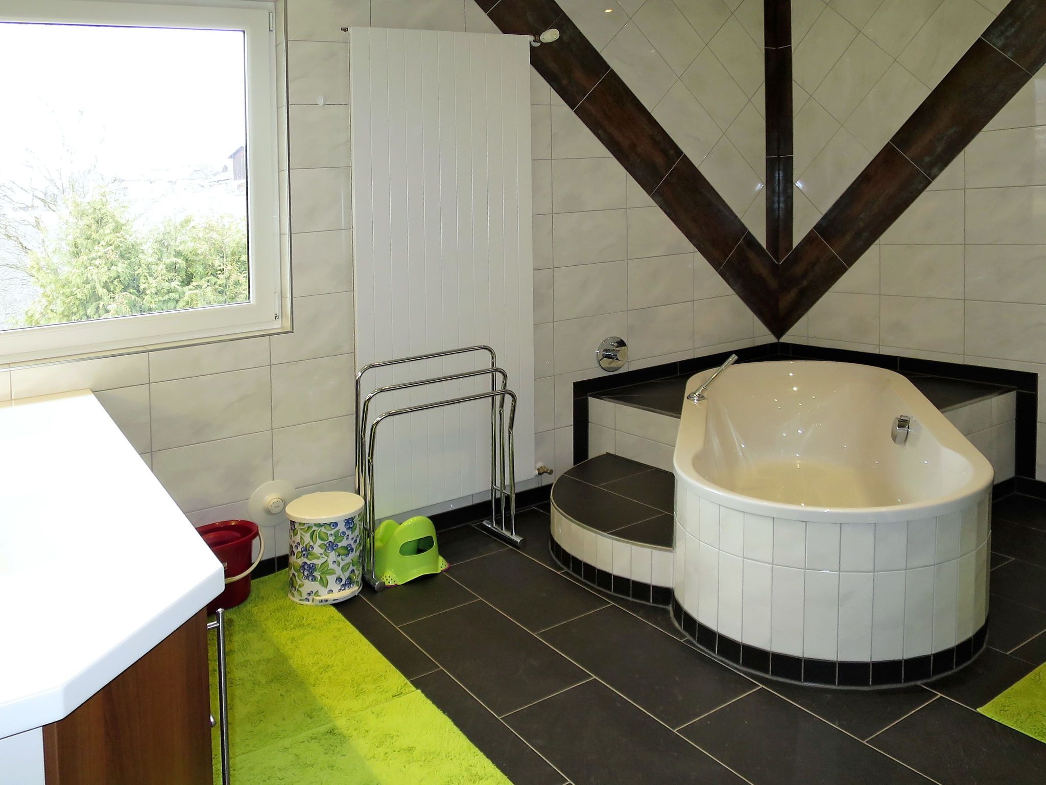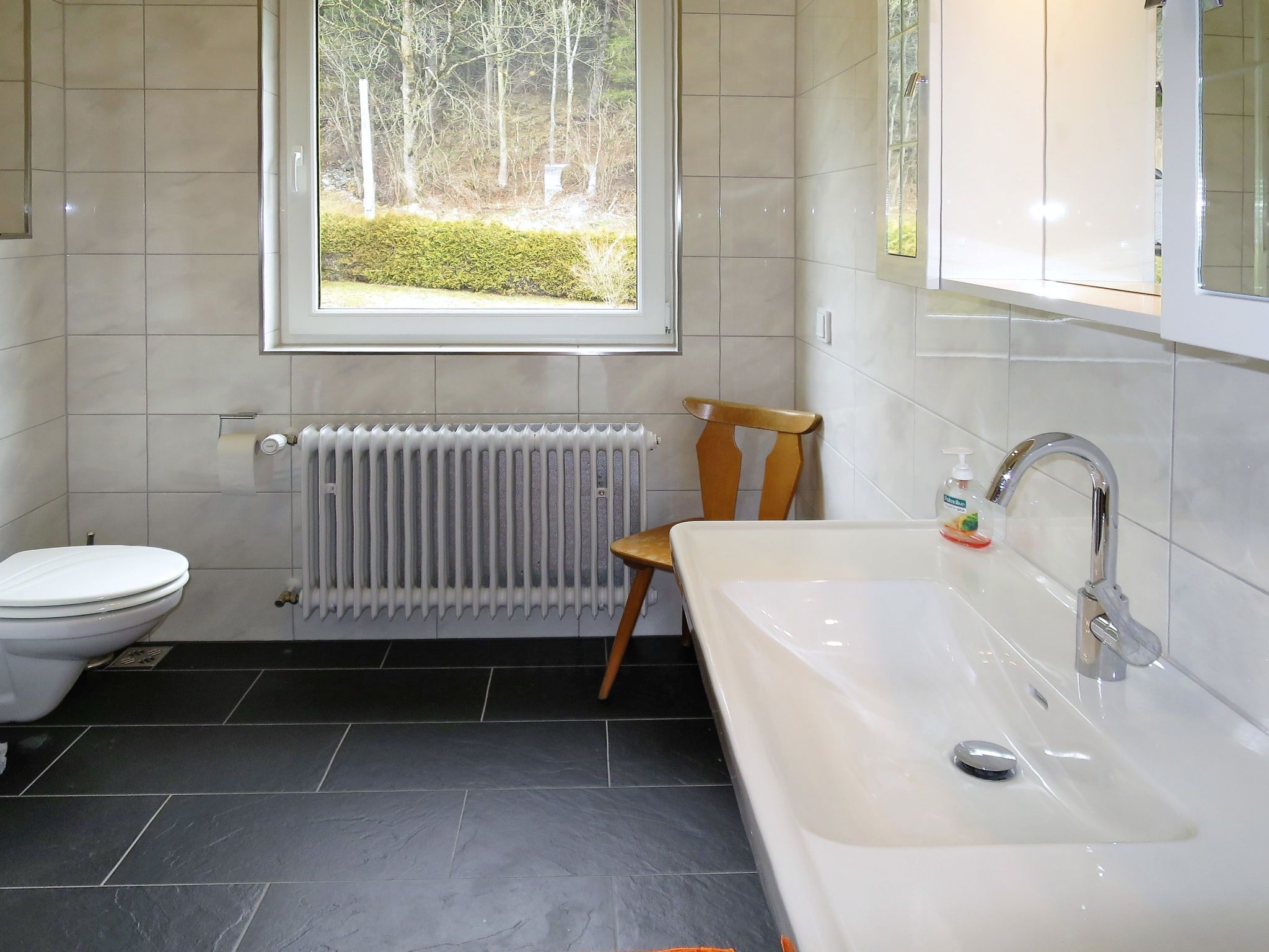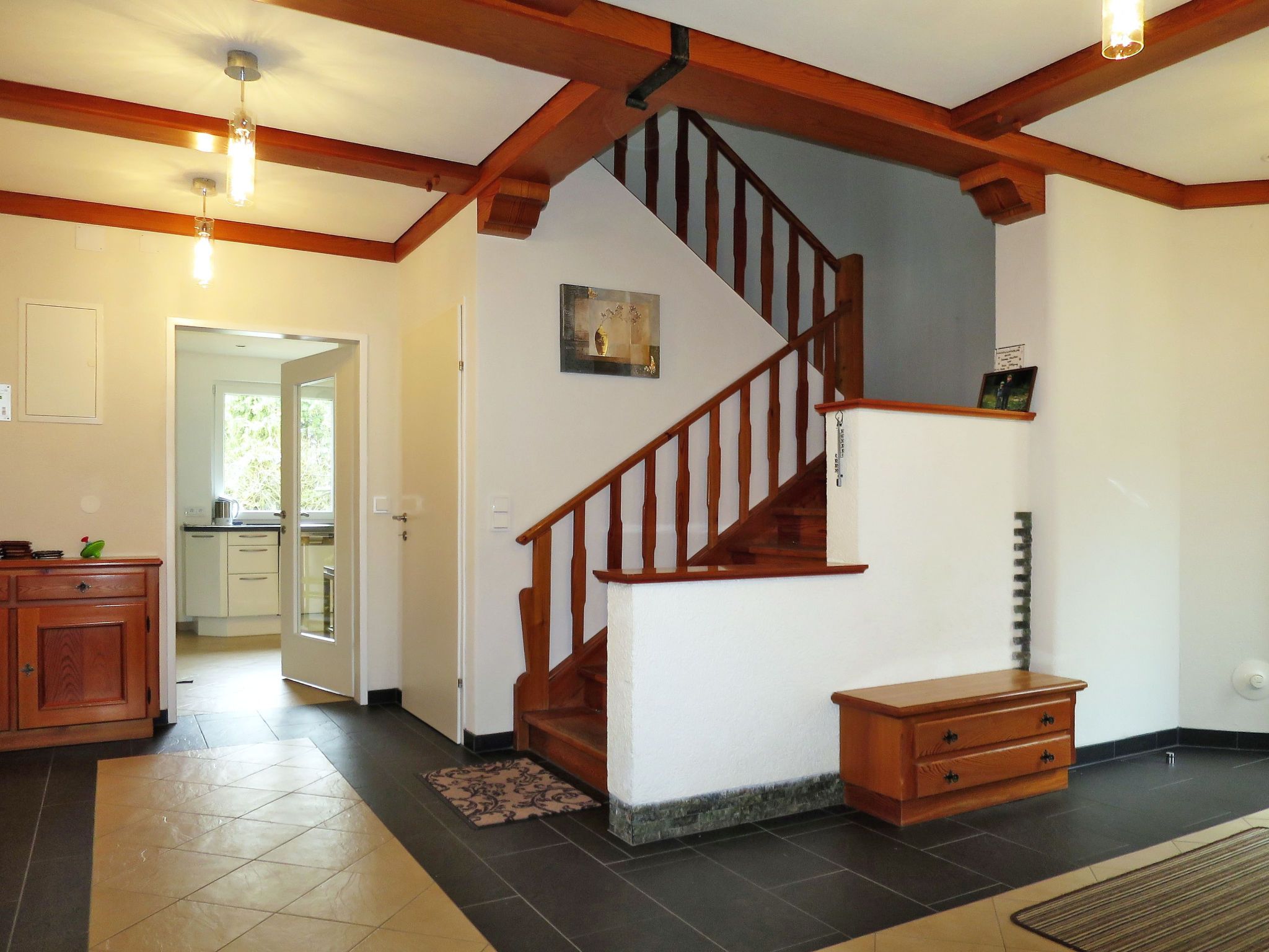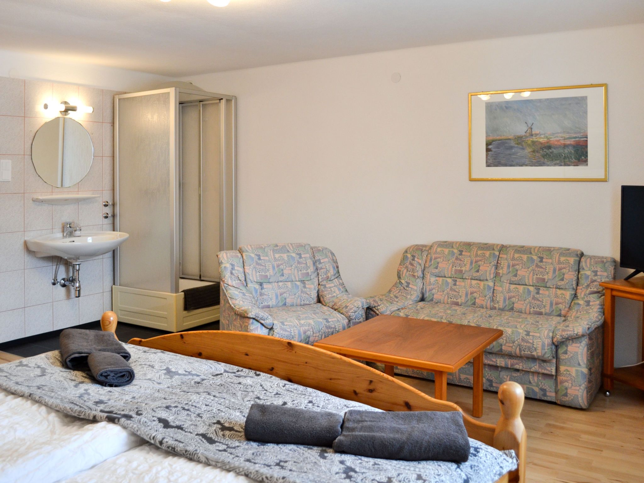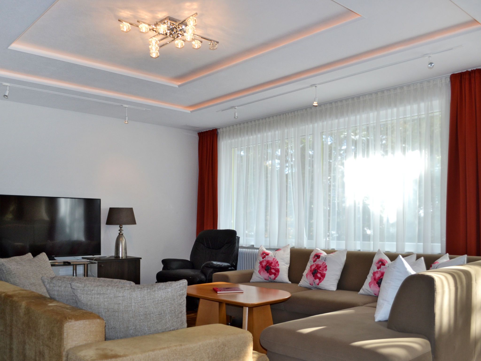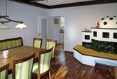 Viola, 7-Zimmer-Haus 300 m2 auf 3 Stockwerken. Geräumig, renoviert im Jahre 2017, modern und stilvoll eingerichtet: Wohnzimmer mit Sat-TV und Kachelofen. Ausgang zur Terrasse. Esszimmer mit Esstisch, Essecke und Kachelofen. Küche (Backofen, Geschirrspüler, 4 Glaskeramikplatten, Toaster, Wasserkocher, Mikrowelle, Tiefkühler, elektrische Kaffeemaschine). Sep. WC. Obergeschoss: 3 Zimmer, jedes Zimmer mit 1 Doppelbett. Ausgang zum Balkon. 1 Zimmer mit 1 Doppelbett. Bad/Dusche, Dusche/WC, sep. WC, Doppelwaschbecken. 2. Obergeschoss: 1 Zimmer mit 1 Doppelbett, Waschbecken und Dusche. Ölheizung. Parkettboden. Balkon, Terrasse teilweise überdacht. Terrassenmöbel, Gartengrill. Zur Verfügung: Waschmaschine, Wäschetrockner, Bügeleisen, Kinderhochstuhl, Babybett. Internet (WLAN, gratis). Bitte beachten: Nichtraucher-Haus. Maximal 2 Haustiere/Hunde erlaubt. Bei Belegung mit weniger Personen als der maximalen Personenzahl stehen nicht alle Schlafzimmer zur Verfügung.