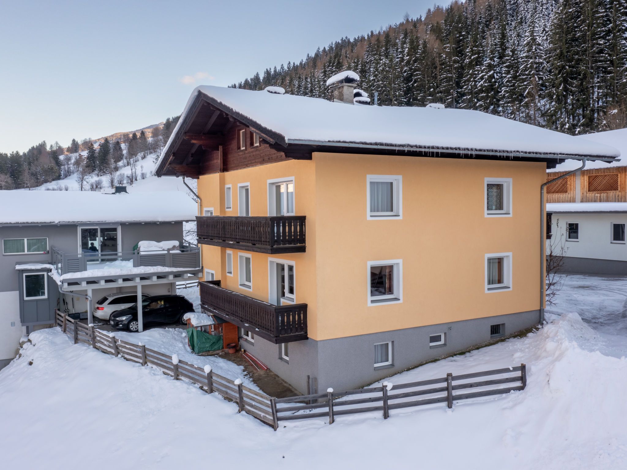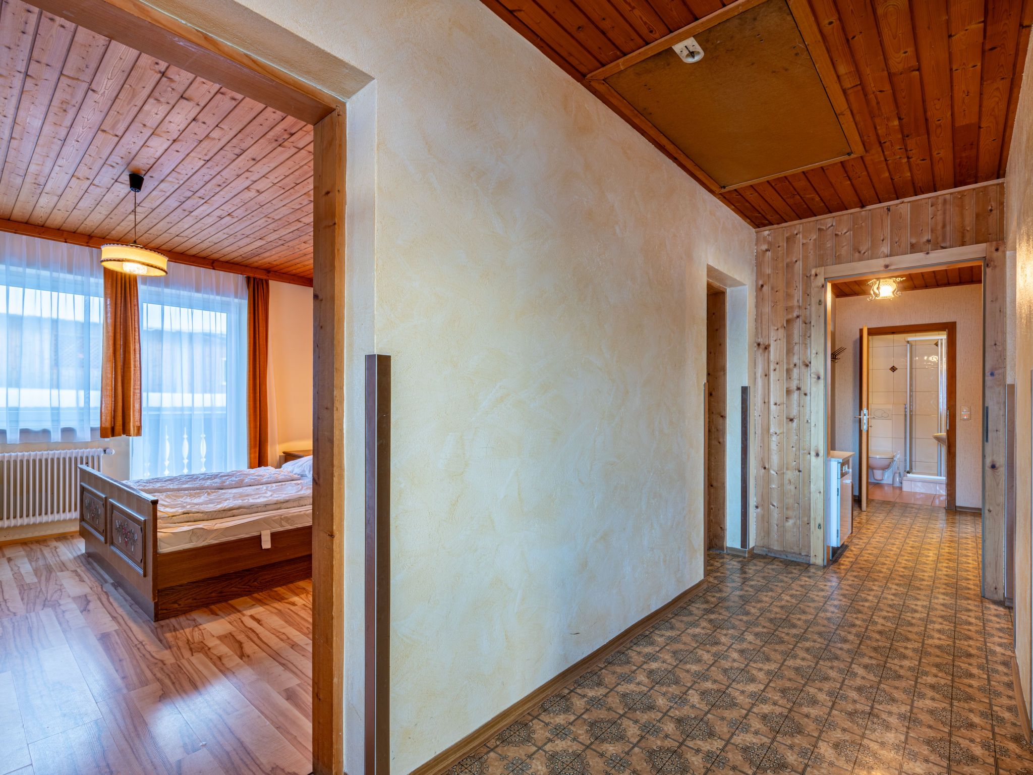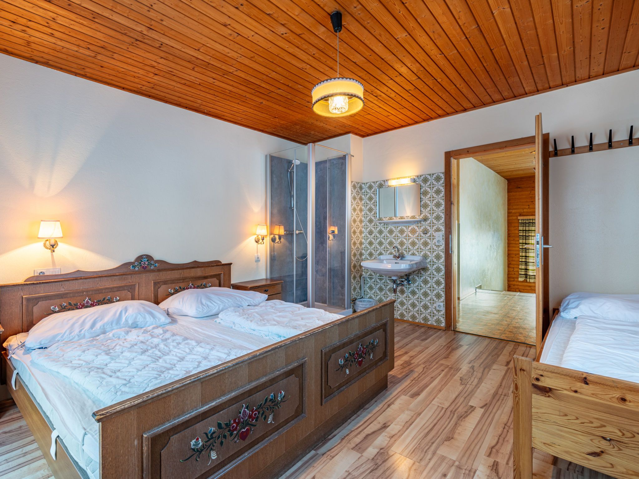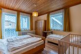 Pilz, 9-Zimmer-Haus 220 m2 auf 3 Stockwerken. Rustikal und gemütlich eingerichtet: Wohn-/Esszimmer mit Esstisch, Essecke, Sat-TV, Stereoanlage und Kachelofen. 1 Zimmer mit 1 Bett und 1 Doppelbett. Küche (Backofen, Geschirrspüler, 4 Glaskeramikplatten, Mikrowelle, elektrische Kaffeemaschine) mit kleinem Esstisch, Essecke. Dusche, sep. WC. Unteres Geschoss: Durchgangszimmer mit 2 Betten. Offenes, verbundenes Zimmer mit 1 Doppelbett und Dusche/WC. Obergeschoss: 1 Zimmer mit 1 Bett, 1 Doppelbett, Waschbecken und Dusche. 2 Zimmer, jedes Zimmer mit 1 Bett, 1 Doppelbett und Waschbecken. 2 Zimmer, jedes Zimmer mit 2 Betten und Waschbecken. Dusche/WC, sep. WC. Ölheizung. Herrliche Panoramasicht auf die Berge, das Tal und Schladming. Zur Verfügung: Waschmaschine, Kinderhochstuhl, Babybett. Bitte beachten: Nichtraucher-Haus. Maximal 1 Haustier/Hund erlaubt. Rauchmelder.