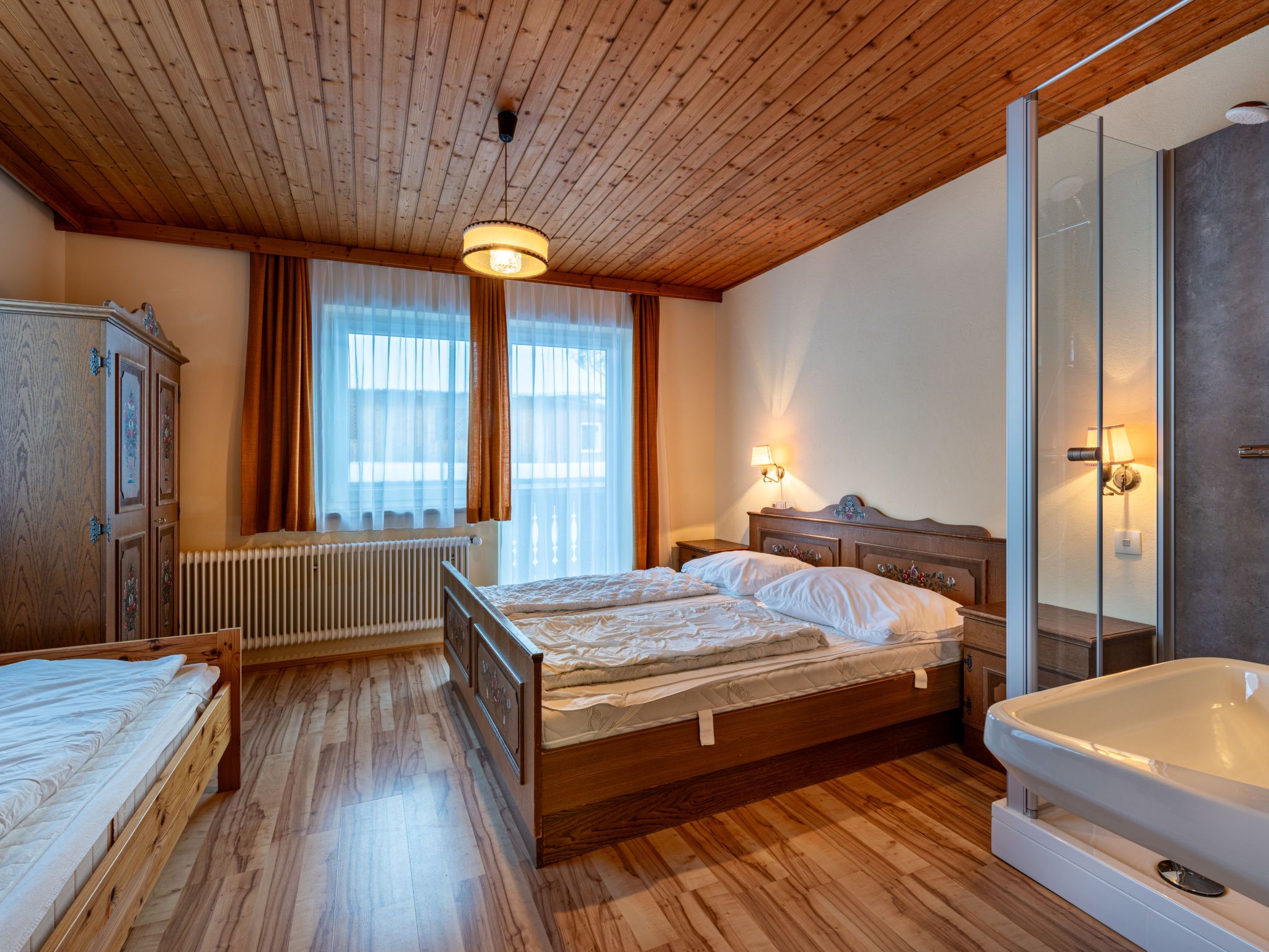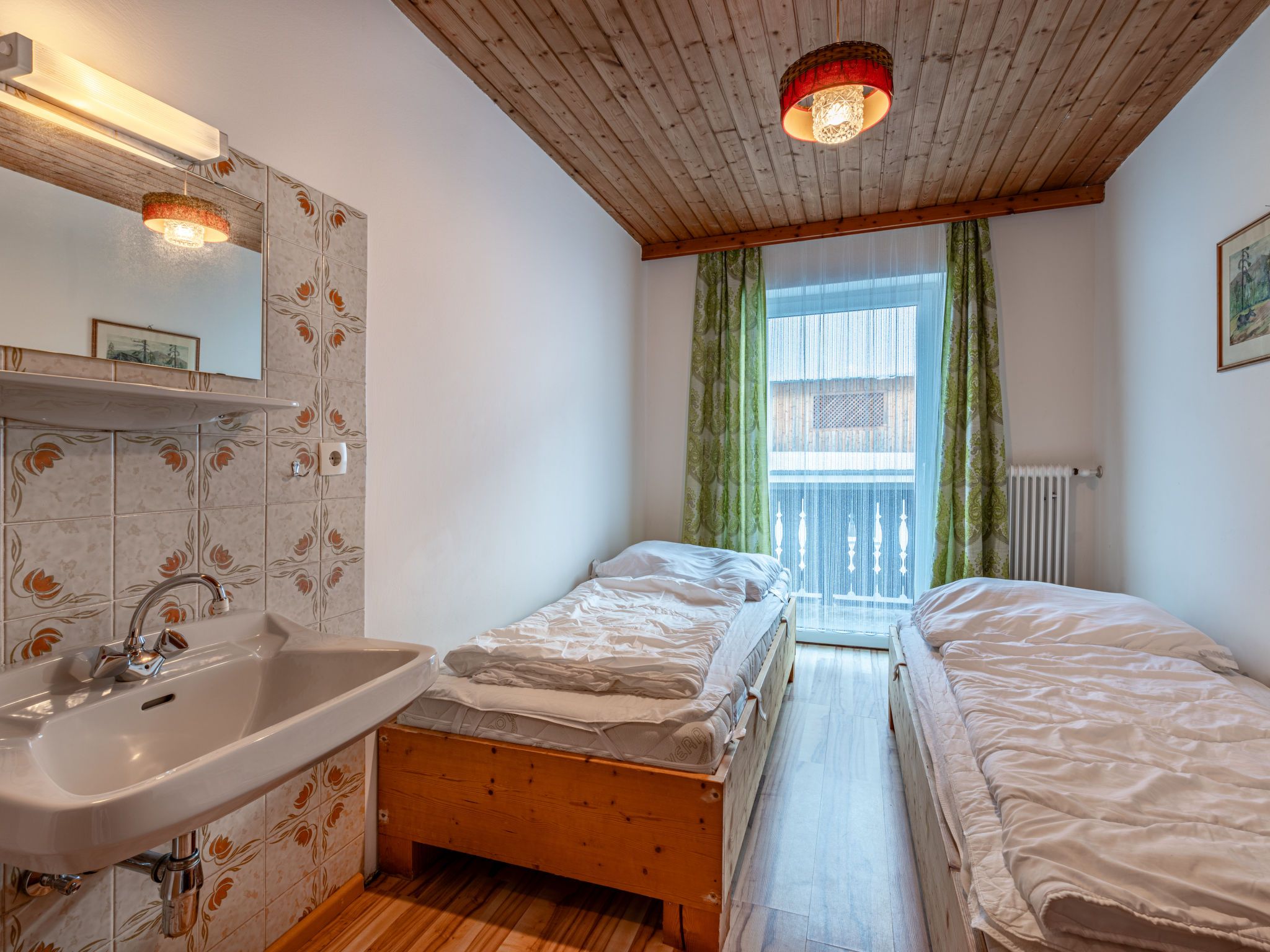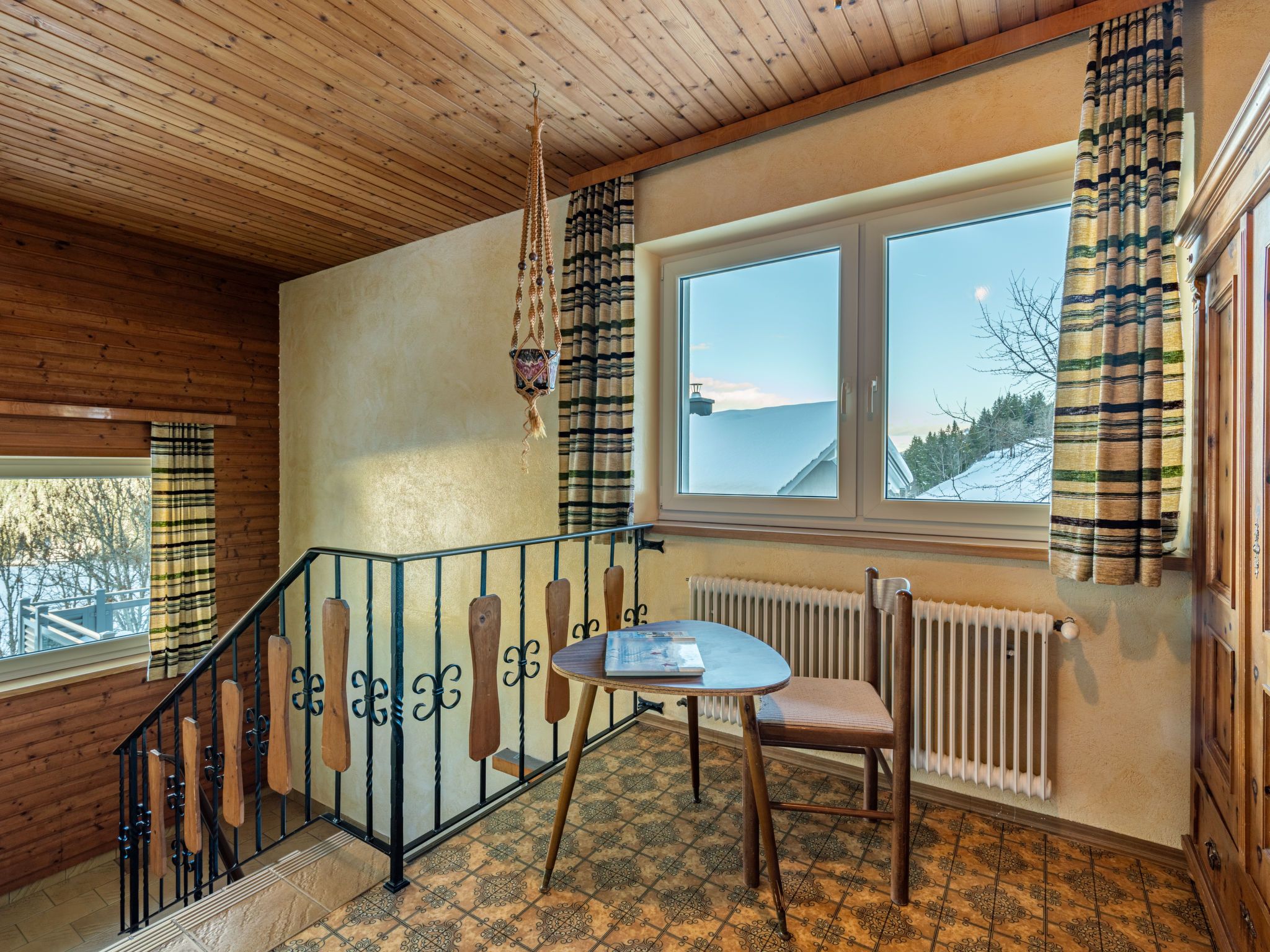 Pilz, 9-Zimmer-Haus 220 m2 auf 3 Stockwerken. Rustikal und gemütlich eingerichtet: Wohn-/Esszimmer mit Esstisch, Essecke, Sat-TV, Stereoanlage und Kachelofen. 1 Zimmer mit 1 Bett und 1 Doppelbett. Küche (Backofen, Geschirrspüler, 4 Glaskeramikplatten, Mikrowelle, elektrische Kaffeemaschine) mit kleinem Esstisch, Essecke. Dusche, sep. WC. Unteres Geschoss: Durchgangszimmer mit 2 Betten. Offenes, verbundenes Zimmer mit 1 Doppelbett und Dusche/WC. Obergeschoss: 1 Zimmer mit 1 Bett, 1 Doppelbett, Waschbecken und Dusche. 2 Zimmer, jedes Zimmer mit 1 Bett, 1 Doppelbett und Waschbecken. 2 Zimmer, jedes Zimmer mit 2 Betten und Waschbecken. Dusche/WC, sep. WC. Ölheizung. Herrliche Panoramasicht auf die Berge, das Tal und Schladming. Zur Verfügung: Waschmaschine, Kinderhochstuhl, Babybett. Bitte beachten: Nichtraucher-Haus. Maximal 1 Haustier/Hund erlaubt. Rauchmelder.
