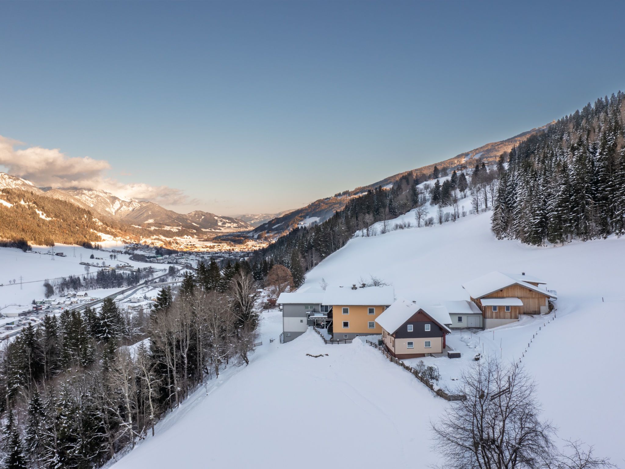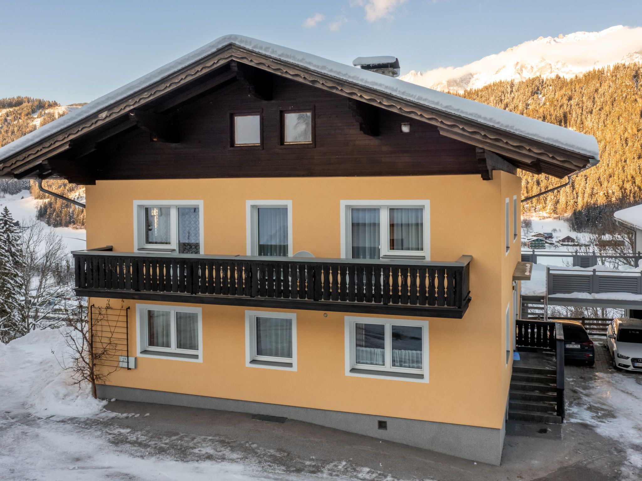 Grosses, rustikales Landhaus Pilz II, 900 m.ü.M., umgeben von Wiesen. 3 km vom Zentrum von Schladming, 1 km vom Zentrum von Rohrmoos-Untertal, alleinstehende, sonnige Lage am Hang, 6 km vom See, 2.3 km vom Skigebiet, im Grünen. Im Hause: Skiraum, Skischuhtrockner. 1.5 km lange steile, schmale Zufahrt bis zum Haus. Im Winter bitte Schneeketten mitbringen. Parkplatz auf dem Grundstück. Supermarkt 2 km, Restaurant 2.5 km, Bushaltestelle 1.5 km, Bahnstation Schladming 3 km, Freibad 5 km, Hallenbad 5 km, Badesee Pichl 6 km. Golfplatz (18 Loch) 9 km, Tennis 1.8 km, Minigolf 3.3 km, Bergeisenbahn 2.3 km, Skilift 2.3 km, Skipisten 2.3 km, Skibushaltestelle 1.5 km. Bekannte Skigebiete sind gut erreichbar: Planai 4 km.
