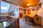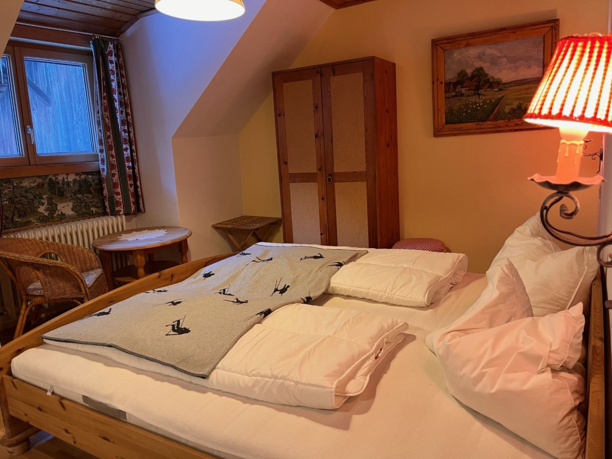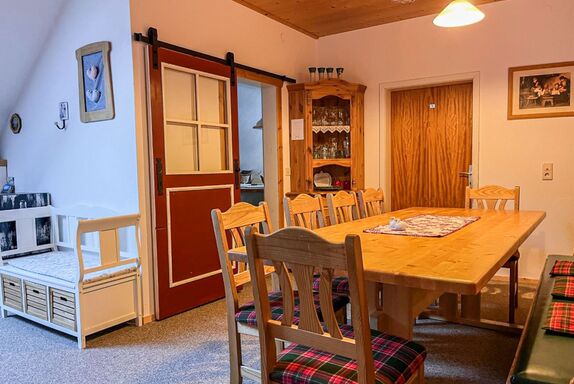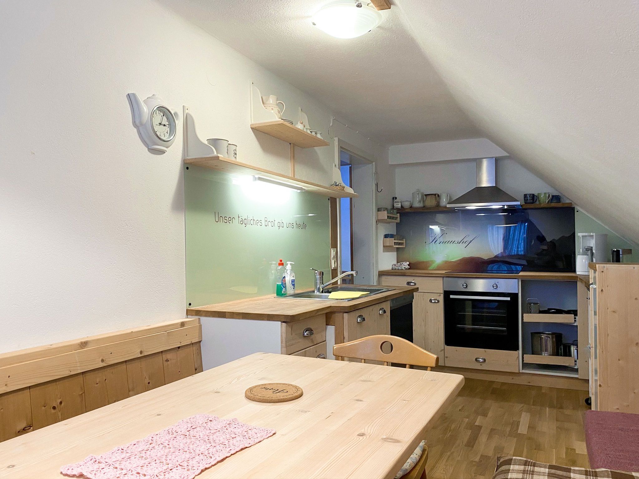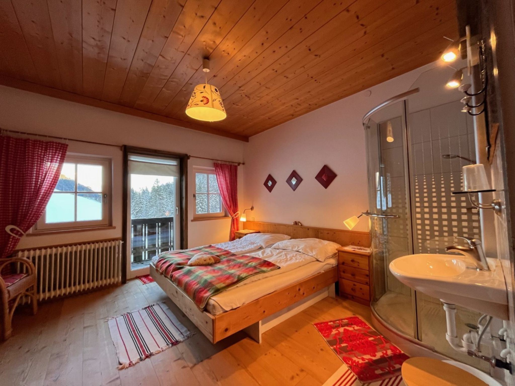 Knaushof, 6-Zimmer-Wohnung 110 m2 im 2. Stock. Teilweise abgeschrägt, stilvoll und gemütlich eingerichtet: Eingang mit Esstisch. 1 Zimmer mit 1 Doppelbett, Waschbecken und Dusche. Ausgang zum Balkon. 1 Zimmer mit 1 Doppelbett, Waschbecken und Dusche. 1 Zimmer mit 1 Doppelbett und Waschbecken. 1 Zimmer mit 2 Betten, 1 Doppelbett und Waschbecken. Ausgang zum Balkon. 1 Zimmer mit 1 Bett, 1 Doppelbett, Waschbecken und Dusche. Ausgang zum Balkon. Wohnküche (Backofen, Geschirrspüler, 4 Glaskeramikplatten, Toaster, Wasserkocher, Mikrowelle, elektrische Kaffeemaschine) mit Esstisch. 2 sep. WC's. Holzheizung. Holzdielenboden, Teppichboden. Balkon. Zur Verfügung: Kinderhochstuhl, Babybett. Internet (WLAN, gratis). Bitte beachten: Maximal 1 Haustier/Hund erlaubt. Rauchmelder.