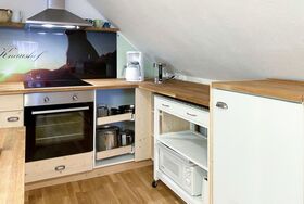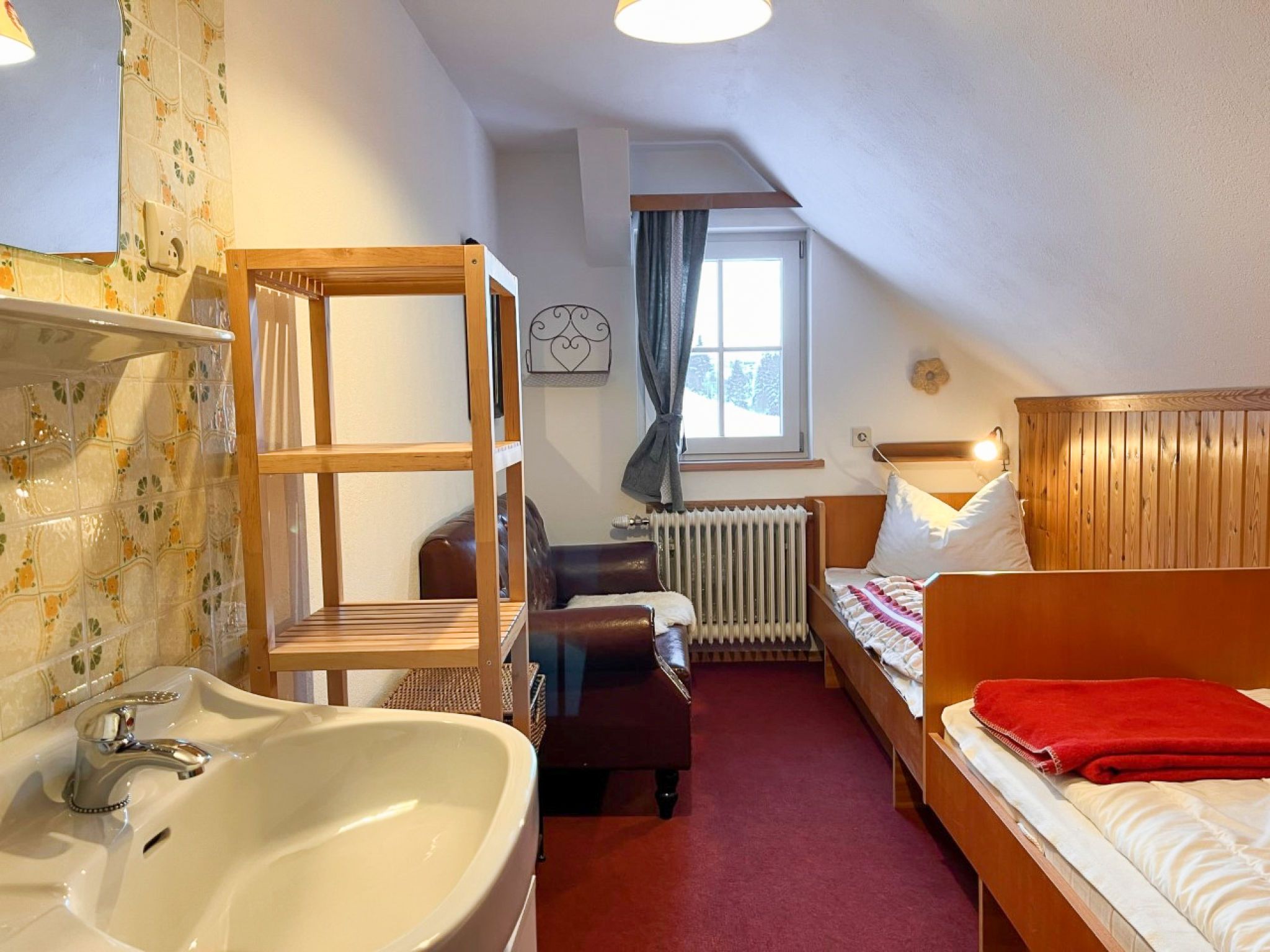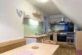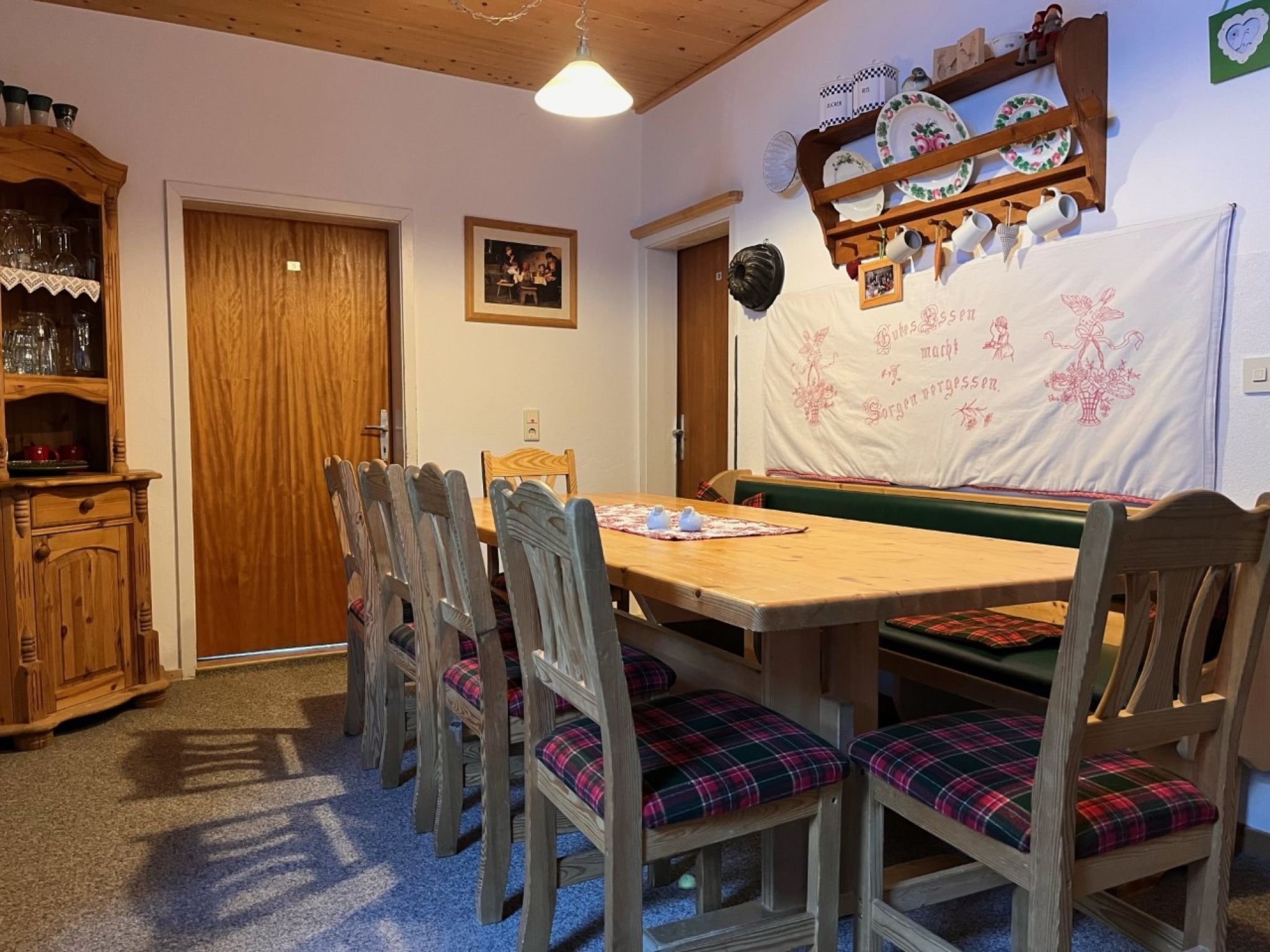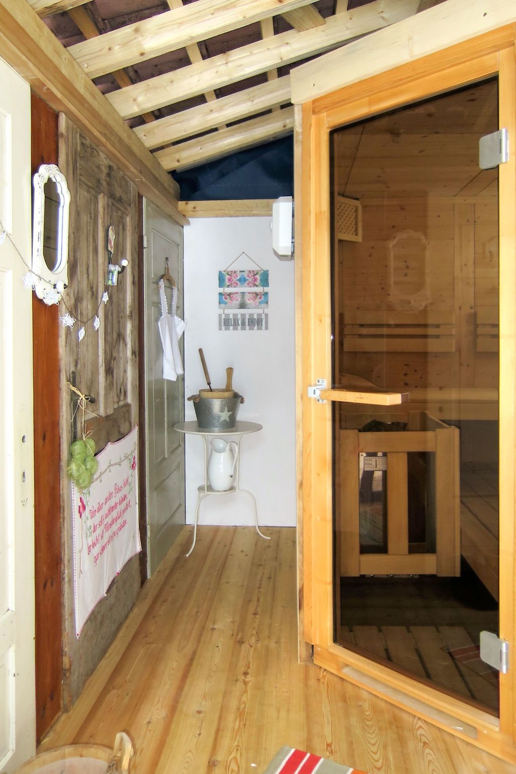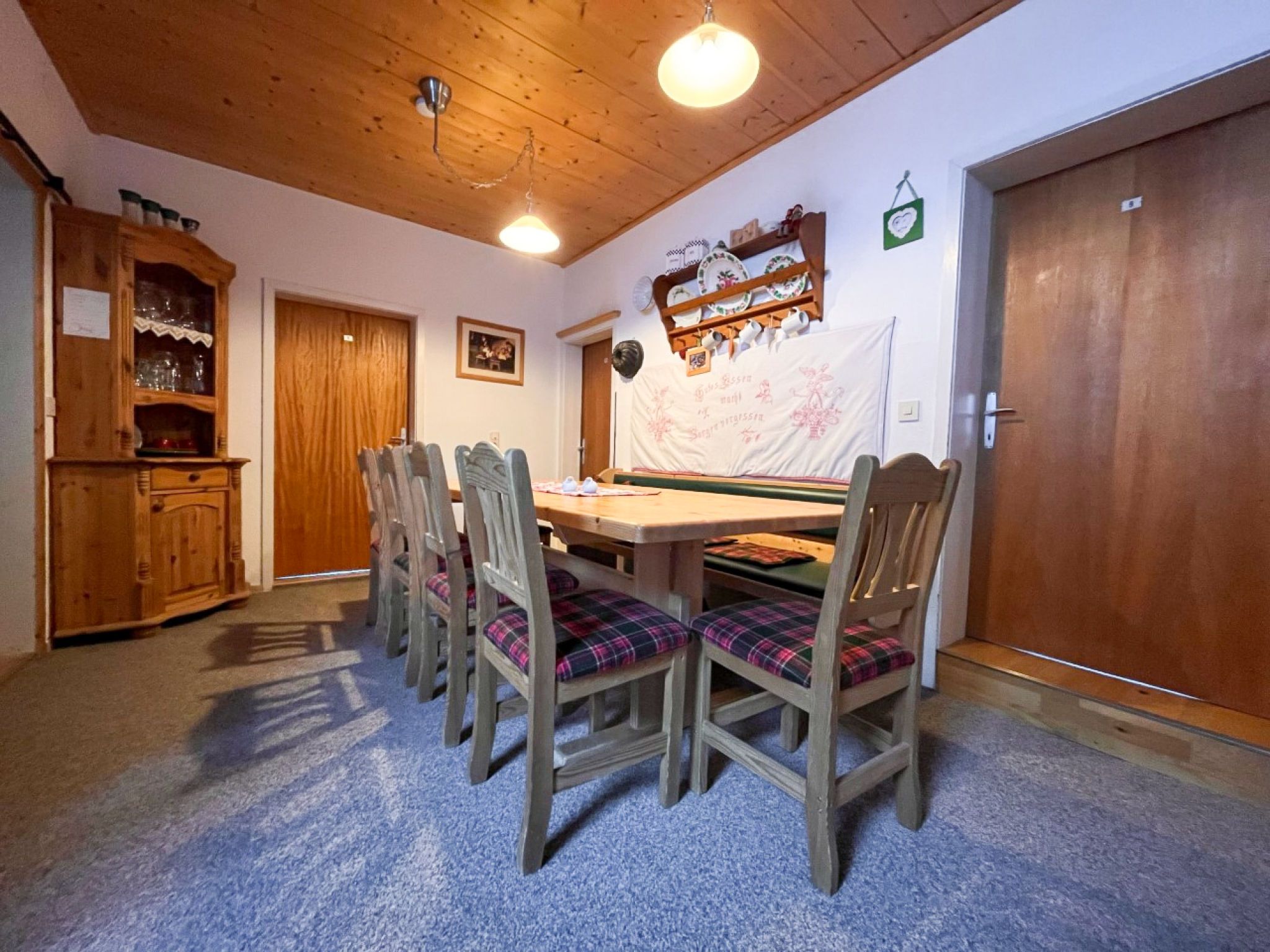 Knaushof, 6-Zimmer-Wohnung 110 m2 im 2. Stock. Teilweise abgeschrägt, stilvoll und gemütlich eingerichtet: Eingang mit Esstisch. 1 Zimmer mit 1 Doppelbett, Waschbecken und Dusche. Ausgang zum Balkon. 1 Zimmer mit 1 Doppelbett, Waschbecken und Dusche. 1 Zimmer mit 1 Doppelbett und Waschbecken. 1 Zimmer mit 2 Betten, 1 Doppelbett und Waschbecken. Ausgang zum Balkon. 1 Zimmer mit 1 Bett, 1 Doppelbett, Waschbecken und Dusche. Ausgang zum Balkon. Wohnküche (Backofen, Geschirrspüler, 4 Glaskeramikplatten, Toaster, Wasserkocher, Mikrowelle, elektrische Kaffeemaschine) mit Esstisch. 2 sep. WC's. Holzheizung. Holzdielenboden, Teppichboden. Balkon. Zur Verfügung: Kinderhochstuhl, Babybett. Internet (WLAN, gratis). Bitte beachten: Maximal 1 Haustier/Hund erlaubt. Rauchmelder.
