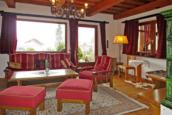 Walcher, 6-Zimmer-Haus 120 m2 auf 2 Stockwerken. Rustikal und mit viel Holz eingerichtet: Wohn-/Esszimmer, auf 2 Ebenen mit Esstisch, Essecke, Sat-TV, Stereoanlage und Kachelofen. Ausgang zur Terrasse. 1 Zimmer mit 1 Doppelbett und Dusche/WC. 1 Zimmer mit 1 Doppelbett und Bad/Dusche/WC. Schlafnische mit 1 Doppeldiwanbett. Ausgang zur Terrasse. Küche (Backofen, Geschirrspüler, 4 Glaskeramikplatten, Toaster, Mikrowelle, elektrische Kaffeemaschine). Sep. WC. Unteres Geschoss: 1 Zimmer mit 1 franz. Bett (160 cm), Waschbecken. 1 Zimmer mit 1 Doppelbett. Dusche/WC. Ölheizung. Holzdielenboden. Terrasse überdacht. Terrassenmöbel, Gartengrill (mobil), Liegestühle (4). Panoramasicht auf die Berge, den Wald und Planai. Zur Verfügung: Waschmaschine, Bügeleisen, Kinderhochstuhl, Babybett. Internet (WLAN, gratis). Bitte beachten: ein Doppelzimmer liegt außerhalb der Wohnung. Nichtraucher-Haus. Maximal 2 Haustiere/Hunde erlaubt. Rauchmelder. Anstelle eines abgeschlossenen Schlafzimmers befinden sich manche Schlafplätze in einem offenen Bereich (Galerie, Nische etc.).
