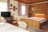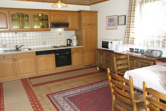 Lassnig, 3-Zimmer-Wohnung 60 m2, im Erdgeschoss. Einfach und gemütlich eingerichtet: 1 Doppelzimmer mit Sat-TV. 1 Zimmer mit 1 x 2 Etagenbetten. Wohnküche (4 Kochplatten, Backofen, Geschirrspüler, Toaster, Wasserkocher, Mikrowelle, elektrische Kaffeemaschine) mit Essecke und Radio. Dusche/WC. Heizung. Terrasse. Terrassenmöbel. Zur Verfügung: Kinderhochstuhl, Babybett. Internet (Wireless LAN, gratis).