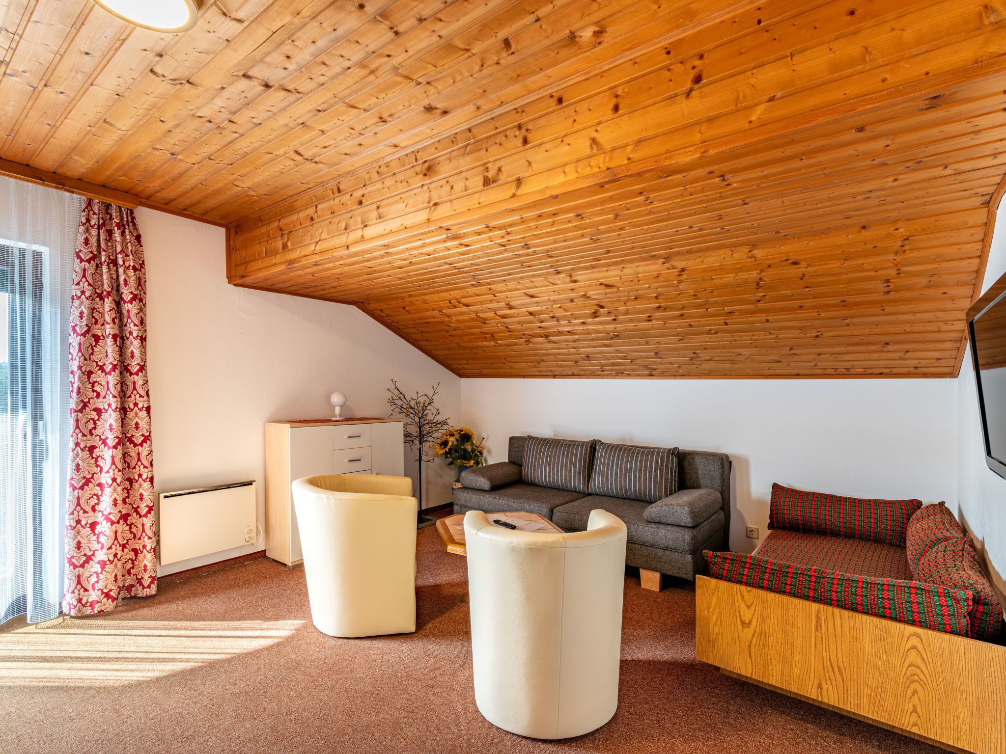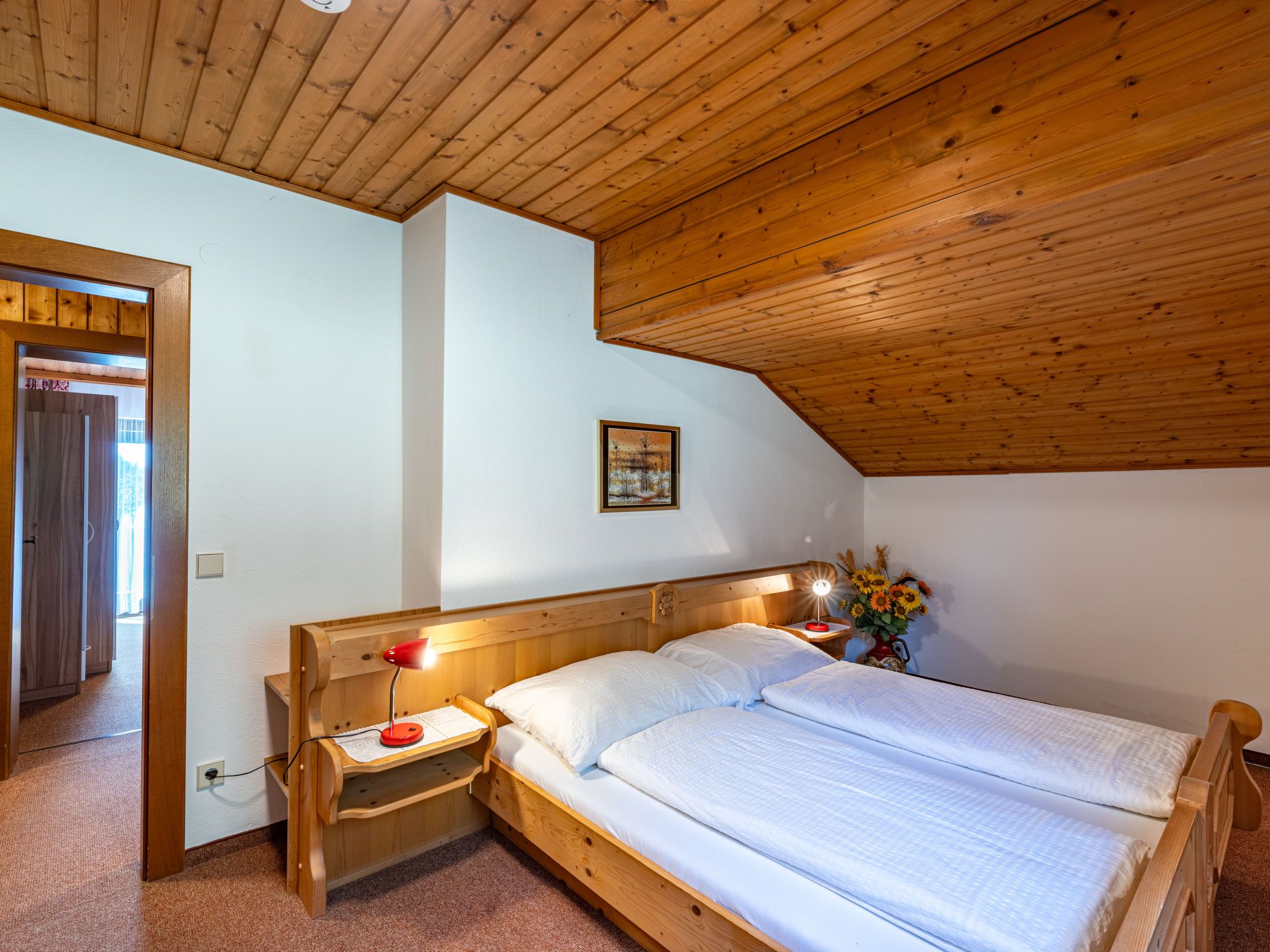 Alpenrose 3, 2-Zimmer-Wohnung 45 m2 im 2. Stock. Gemütlich eingerichtet: Wohn-/Schlafzimmer mit 1 Doppeldiwanbett und Sat-TV. 1 Doppelzimmer. Kleine Wohnküche (2 Kochplatten, Toaster, Wasserkocher, elektrische Kaffeemaschine) mit Esstisch. Dusche/WC. Heizung. Teppichboden. Balkon, Südlage. Zur Verfügung: Kinderhochstuhl, Babybett. Internet (WLAN, gratis). Bitte beachten: Nichtraucher-Unterkunft. Maximal 1 kleines Haustier/Hund erlaubt.