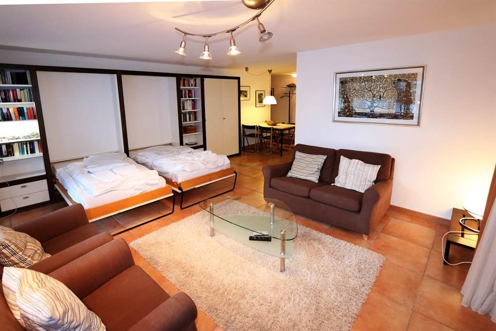 2-Zimmer-Wohnung in ruhiger und sonniger Umgebung, bestehend aus 1 Schlafzimmer, 1 Wohnzimmer mit 2 Schrankbetten, Küche, 1 Bad / WC und Südbalkon mit herrlichem Bergblick. Gratis Wifi ist verfügbar.