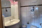 Das 2. Badezimmer hat eine Dusche, Waschbecken und WC (Fön).
