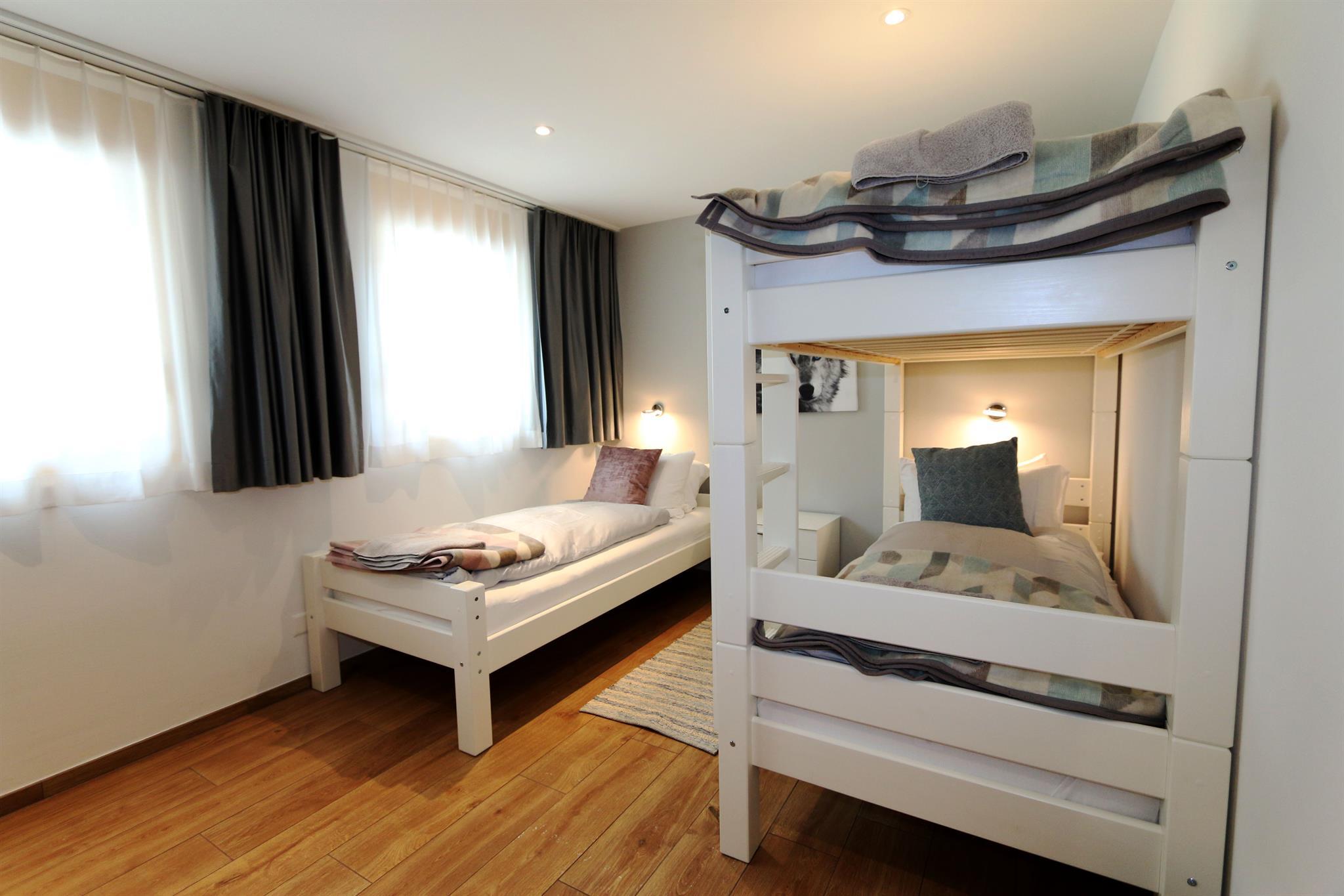 Die Wohnung Derby (*****) befindet sich im zweiten Stock (Aufzug vorhanden) und ist moderne Wohnung für bis zu 5 Personen. Es verfügt über ein Hauptschlafzimmer mit eigenem Bad (Regendusche, WC, Waschbecken, Haartrockner) und ein Deibettzimmer mit Etagenbetten. Ein zusätzliches Bad mit WC und Dusche ist vorhanden.