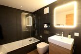 Das Derby Penthouse Apartment (*****) befindet sich in der obersten Etage (Aufzug vorhanden) und ist ein elegantes und modernes Apartment für bis zu 4 Personen. Es verfügt über ein Hauptschlafzimmer und ein Zweibettzimmer, beide Schlafzimmer mit eigenem Bad (Regendusche, WC, Waschbecken, Haartrockner).