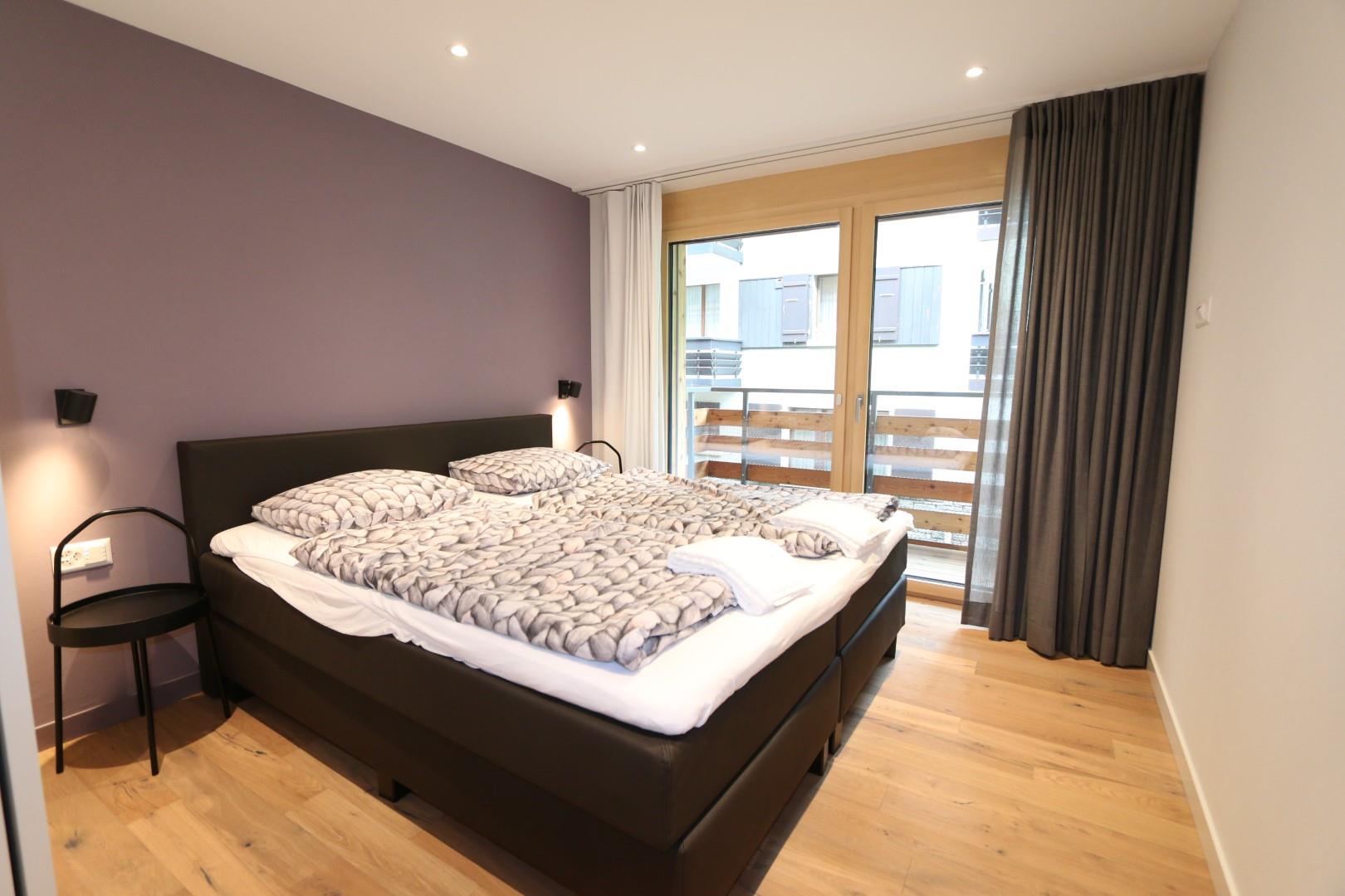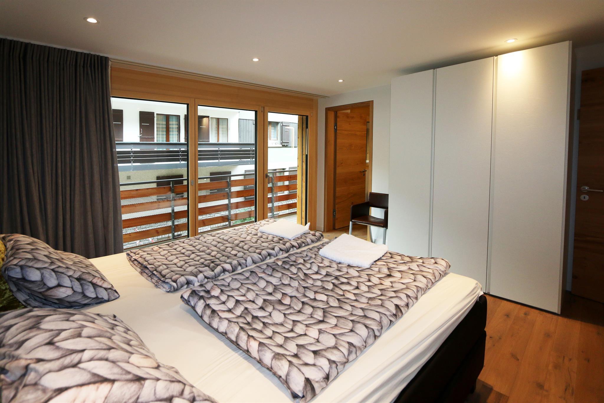 Die Wohnung verfügt über eine offene Küche mit Essbereich, Wohnzimmer mit Kamin und Flachbild-TV. Die Küche ist komplett ausgestattet mit Geschirrspüler, Kombimikrowelle, Backofen, Bora-Induktionsherd, Kaffeemaschine, Toaster, Wasserkocher, Käsefondue-Set und Raclette-Ofen. Geniessen Sie den Panoramablick vom privaten Balkon aus. Natürlich steht auch WLAN zur Verfügung.