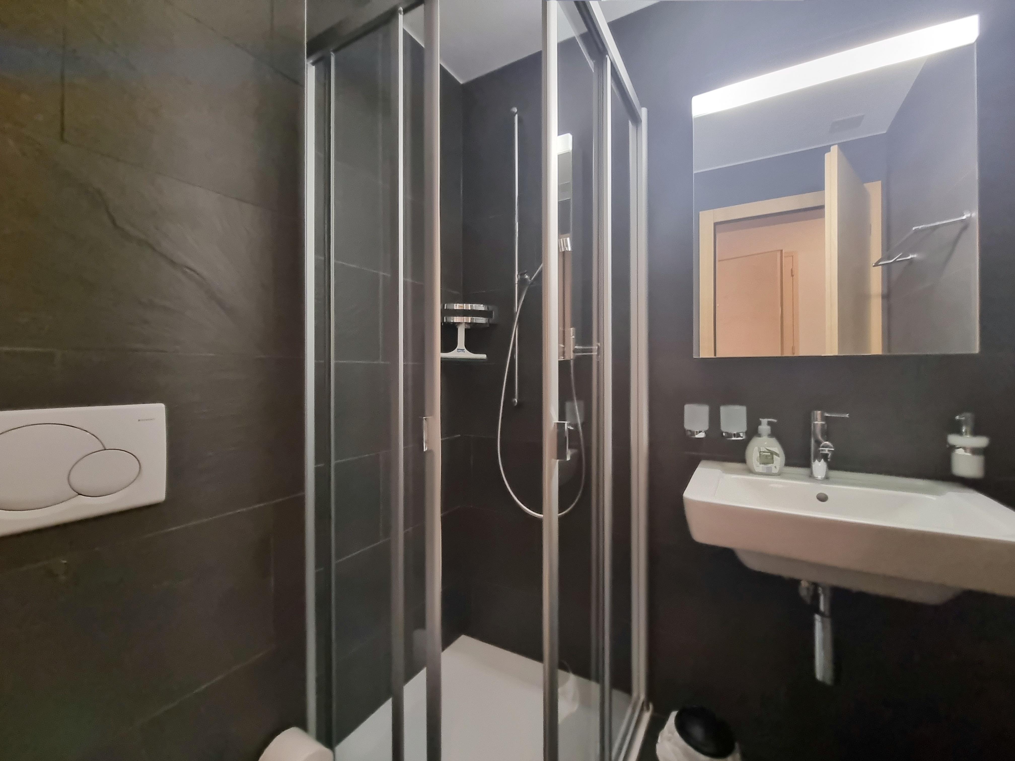 Die Wohnung befindet sich im 1. Stock und besteht aus 2 Schlafzimmern (1x mit Doppelbett, 1x mit 2 Einzelbetten) und 2 Bädern (1x mit Badewanne/WC, 1x en-suite mit Badewanne/WC). Die offene Küche ist mit allen Utensilien ausgestattet, einschließlich einer Nespresso-Maschine. Die Gäste profitieren ausserdem von einem Smart TV und kostenlosem Wifi. Die Wohnung ist sehr modern und hat einen tollen, südlich ausgerichteten Balkon.