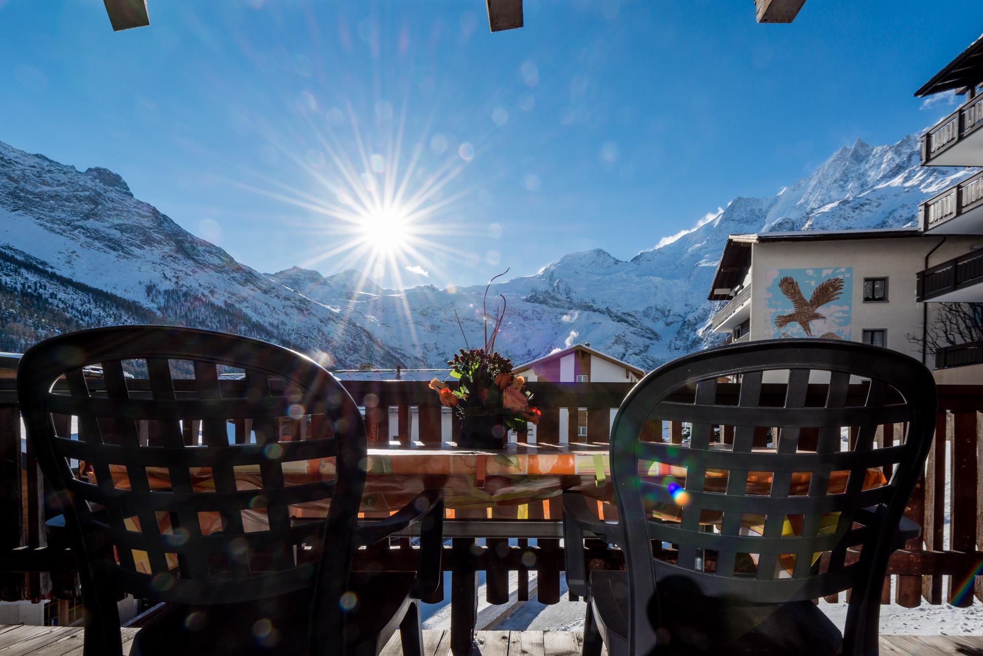 Das Chalet Bambi liegt in ruhiger und sonniger Lage mit Blick auf die Berg- und Gletscherwelt. Sie finden in ungefähr zwei Gehminuten ein Lebensmittelgeschäft und die Bäckerei. In der Nähe des Chalet gibt es einen ruhigen Wald mit einem Kinderspielplatz. In zehn gemütlichen Gehminuten erreichen Sie das Zentrum und die Talstation Metro-Alpin. Unter unserm Haus befindet sich die Haltestelle für den gratis Skibus.