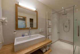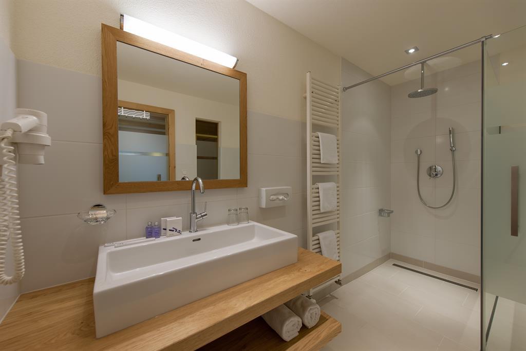 Gemütliches Familienzimmer mit Doppelbett und kuscheliger Wohnecke mit zusätzlichem Sofa (als Zusatzbetten für 1 Person nutzbar), ausgestattet mit Möbeln aus Fichtenholz, HD Flat-TV, Safe, Telefon, Badezimmer mit Badewanne oder Regendusche, Kosmetikspiegel, Föhn, Pflegeprodukte, separates WC. Teilweise verfügen unsere Zimmer über einen Balkon. Größe ca. 30 m²