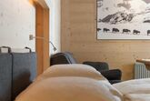 Gemütliches Familienzimmer mit Doppelbett und kuscheliger Wohnecke mit zusätzlichem Sofa (als Zusatzbetten für 1 Person nutzbar), ausgestattet mit Möbeln aus Fichtenholz, HD Flat-TV, Safe, Telefon, Badezimmer mit Badewanne oder Regendusche, Kosmetikspiegel, Föhn, Pflegeprodukte, separates WC. Teilweise verfügen unsere Zimmer über einen Balkon. Größe ca. 30 m²
