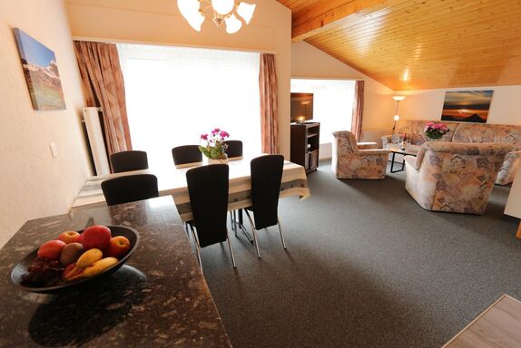 Sehr schöne, neu renovierten 4-Zimmerwohnung (90 m2), 4. Stock, 3. Doppelschlafzimmer, 2 Schlafzimmer mit Waschbecken, grosses Wohnzimmer, Polstergruppe, Essecke, grosser Flachbild Satelliten-TV, DAB-Radiowecker mit Bluetooth, Gratis WLAN. modernes Badezimmer mit Bad/Dusche/WC und Haartrockner und Blick auf den Sternen, 1 separates WC. Offene moderne Küche mit Geschirrspüler, Umluftofen, Keramik Kochherd, Mikrowelle, Kühlschrank mit Gefrierfach, Kaffee-Filtermaschine, Wasserkocher, Handmixer, Toaster usw. Grosser möblierter Süd- Balkon mit freier Aussicht auf die Bergwelt und Gletscher.