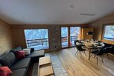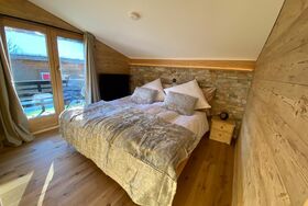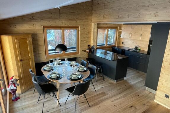 Schlafen 1 mit Doppelbett, Schlafen 2 mit Etagenbett (140cm unten, 90cm oben). Zusätzliches Bettsofa im Wohnzimmer vorhanden. Badezimmer mit Dusche. Küche voll ausgestattet inkl. Geschirrspüler, Kaffeemaschine, Fondue- und Raclette-Set etc. Grosszügiger und heller Wohn-/Essbereich mit Elektrokamin, TV, Internet