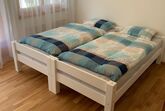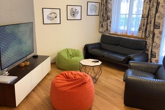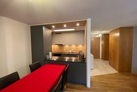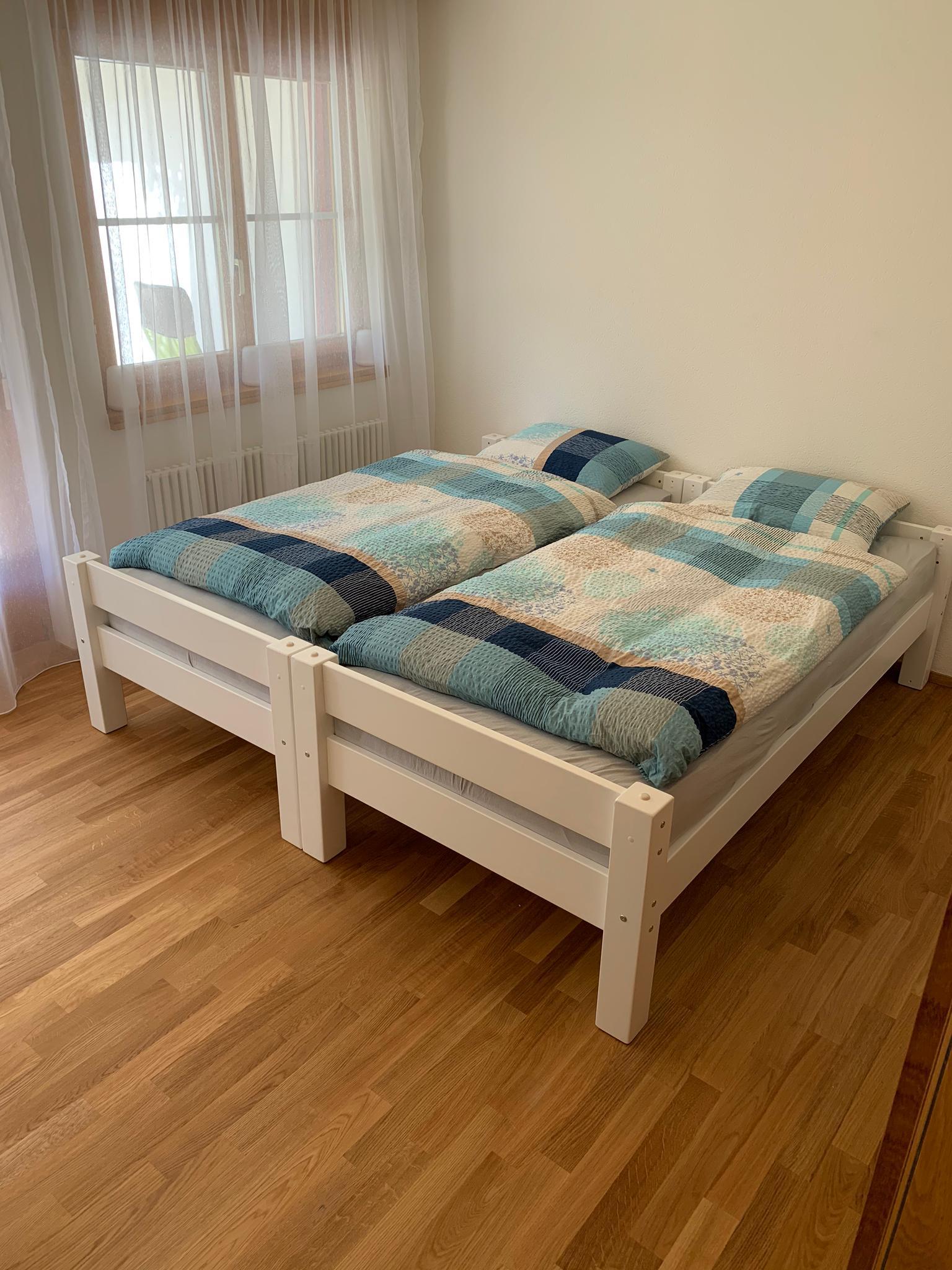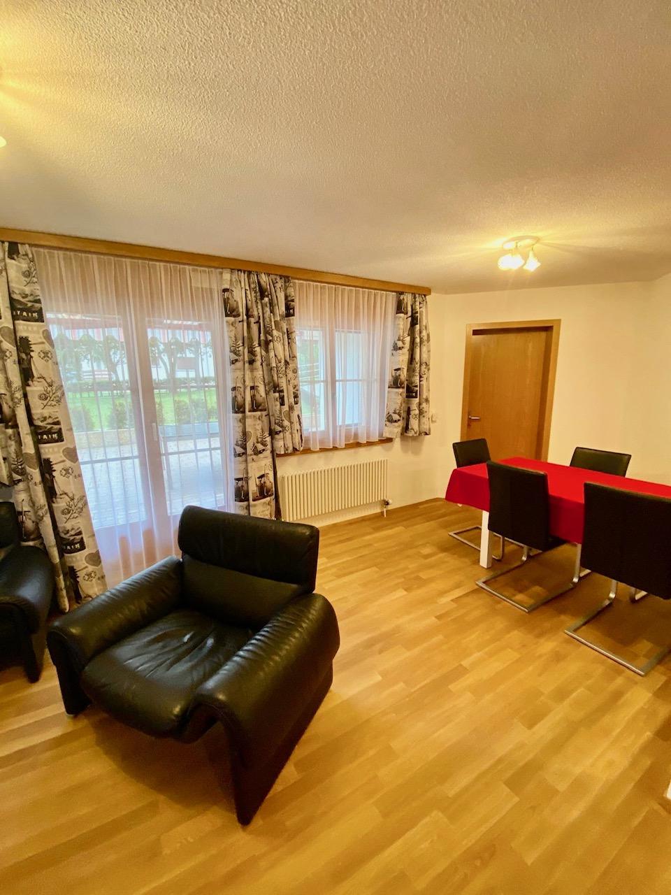 3-Zimmerwohnung (70m2) im Parterre: Wohn-/Esszimmer, gratis WiFi, TV, Radio, offene moderne Küche mit Geschirrspüler, 2 Doppelschlafzimmer (1 x mit Doppelbett / 1 x mit 2 Einzelbetten), Bad/WC, grosse Süd-Terrasse mit Gartenmöbeln, 1 reservierter Garagenplatz im Haus inbegriffen. Nichtraucherwohnung! Haustiere sind nicht erlaubt!