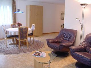 2-Zimmerwohnung in modernem Appartementhaus, vis-à-vis der Alpentherme: Gratis WiFi, Wohn/Esszimmer mit 1 Einzelbett und 1 Wandschrankbett, 1 Doppelschlafzimmer, separate Küche mit Geschirrspüler, Bad/WC, Südwest-Balkon, Radio, TV. Öffentliches Parkhaus gleich gegenüber. Nichtraucherwohnung! Haustiere nicht erlaubt!