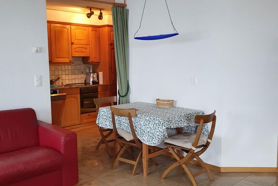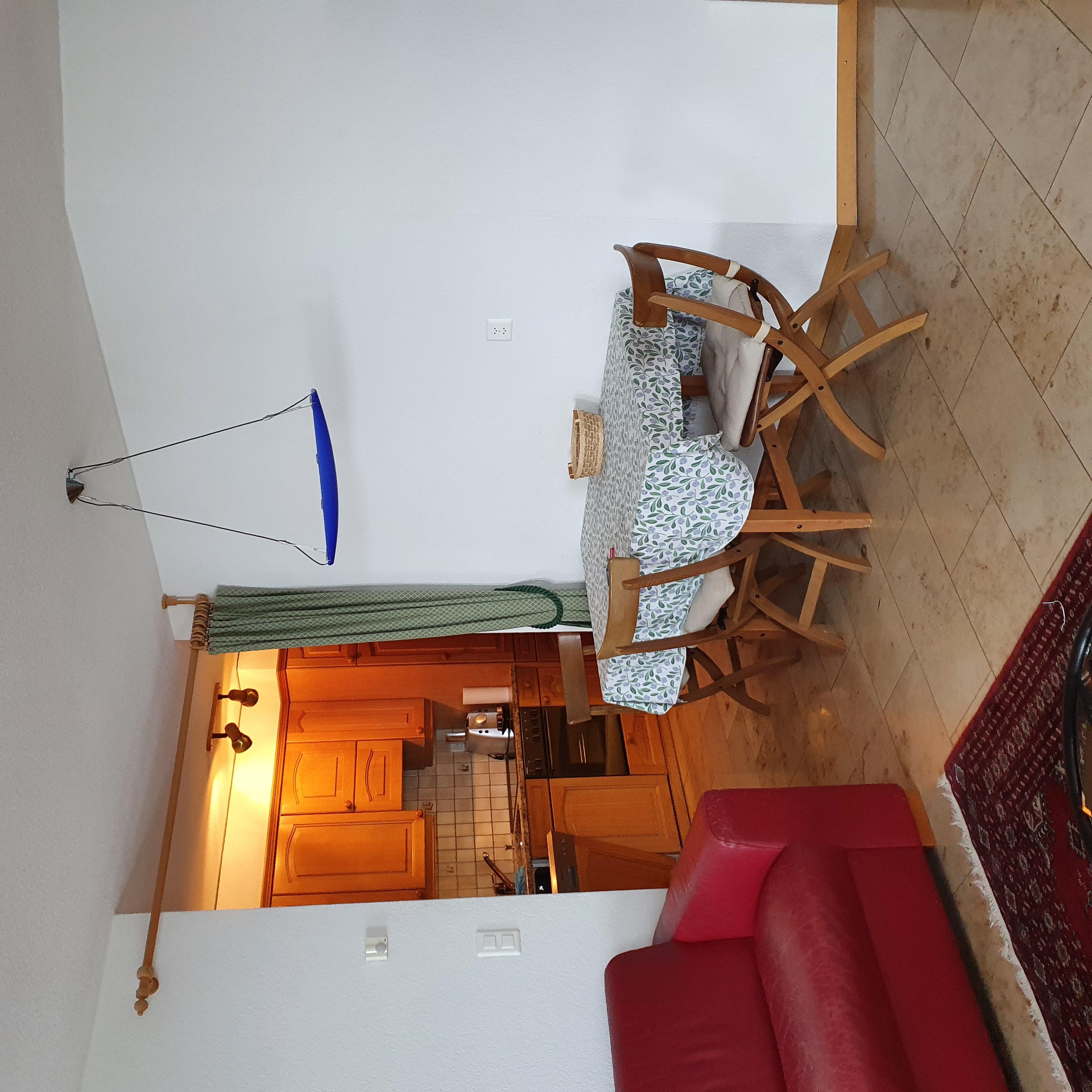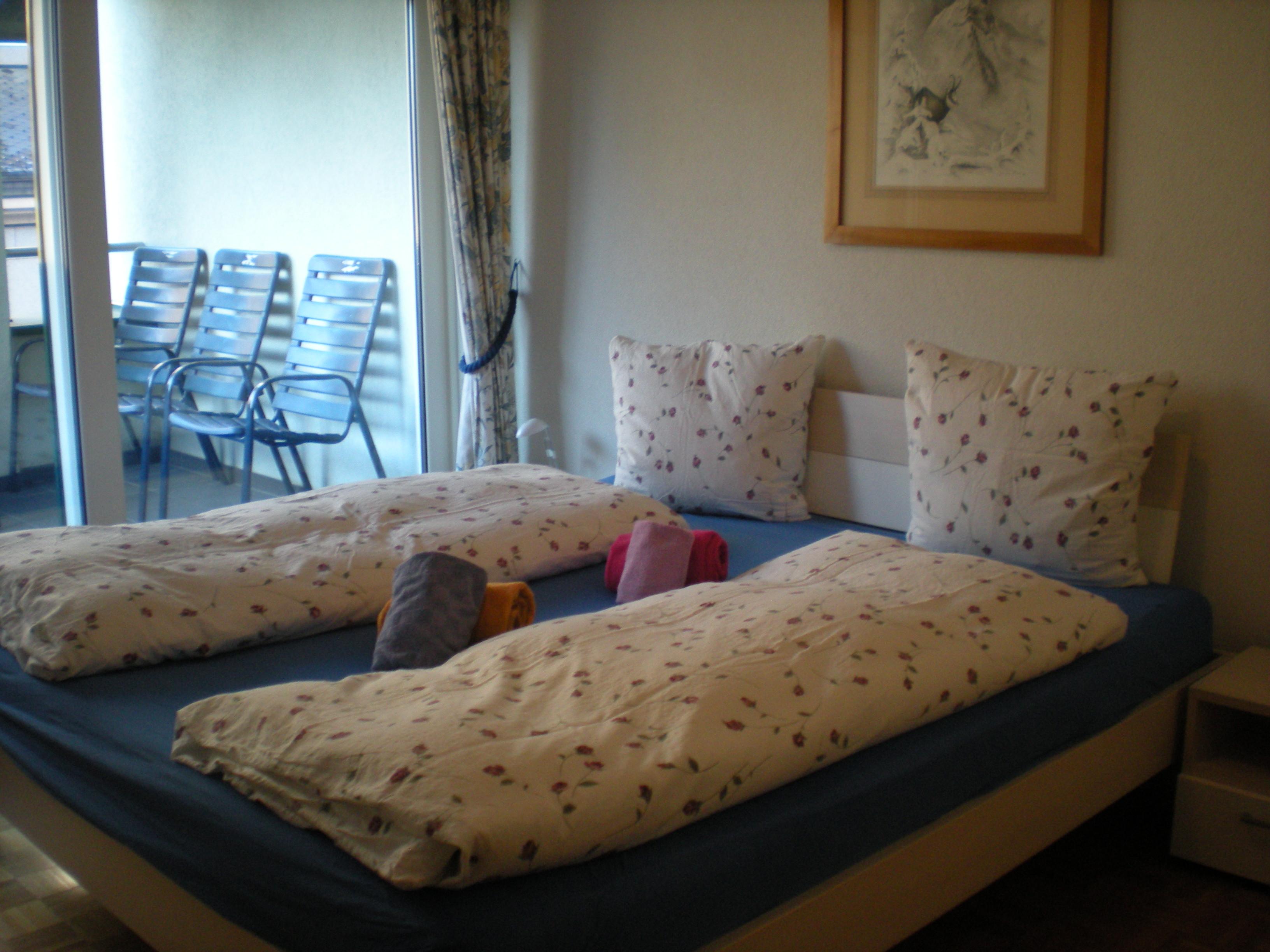 2-Zimmerwohnung im 4. Stock in modernem Appartementhaus, vis-à-vis der Alpentherme: Wohn/Esszimmer mit 2 Schrankbetten, separate Küche mit Geschirrspüler, Schlafzimmer mit 2 Betten, Dusche/WC, 2 Balkone (Süd und West), TV, Stereoanlage, gratis WiFi. Nichtraucherwohnung. Haustiere sind erlaubt.