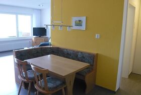 2-Zimmerwohnung: Wohn-/Esszimmer mit 2 Betten, Küche, 1 Schlafzimmer, Dusche/WC, Südbalkon, Radio, TV (Flachbildschirm), gratis W-Lan. Garage inklusive.
