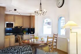 Luxuriöse 3-Zimmerwohnung (81m2) in modernem Neubau, mit hausinternem Wellnessbereich (Whirlpool, Dampfbad, Sauna, Solarium, Kneippkur, Fitness- und Ruheraum). Wohn-/Essraum mit Cheminée, DVD, gratis WiFi, Radio, TV. Offene Küche mit Geschirrspüler, Mikrowelle. 2 Doppelzimmer, 1x Bad/WC, 1x Dusche/WC, grosser Süd-Balkon (23m2). Garage im Haus. Haustiere nicht erlaubt! Nichtraucherwohnung!