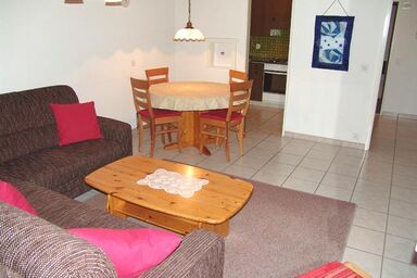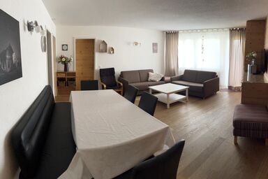 Luxuriöse 3-Zimmerwohnung: 2.Stock, offene Wohnküche mit Geschirrspüler und Mikrowelle, Wohnzimmer, TV, gratis WiFi, 2 Doppelschlafzimmer mit eigener Dusche/WC, zusätzlich separates WC, Südbalkon mit Panoramasicht, ruhige Lage, Lift, Ski- & Veloraum, Kinderspielplatz. Nähe: Torrentbahnen, Thermalbäder, Bushaltestelle Ortsbus, Dorfzentrum. Garage zu mieten im Haus. Nichtraucherwohnung. Haustiere nicht erlaubt!