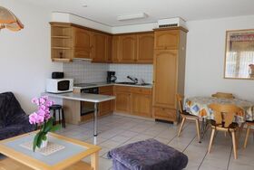 3-Zimmerwohnung (65 m2) mit direktem Zugang zur Liegewiese, grosses Wohn-/Esszimmer, offene Küche mit Geschirrspüler und Mikrowelle, 1 Doppelschlafzimmer, 1 Schlafzimmer mit 2 Betten, Bad/WC, Maximalbelegung 4 Personen, FREE WiFi, Kabel-TV, Radio, Lift. Nichtraucherwohnung. Garage zu mieten.