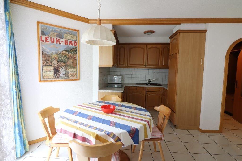 3-Zimmerwohnung (62 m2) im 1. Stock mit Südwestbalkon, grosses Wohn-/Esszimmer mit 2 Wandschrankbetten, offene Küche mit Geschirrspüler und Mikrowelle, 1 Doppelschlafzimmer, 1 Schlafzimmer mit 2 Betten, Bad/WC, Maximalbelegung 6 Personen, FREE WiFi, Kabel-TV, Radio, Lift. Nichtraucherwohnung, Garage zu mieten.