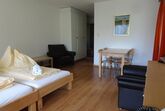 1-Zimmerwohnung: Wohn/Ess/Schlafzimmer mit 2 Betten, Küche, Dusche/WC, Südbalkon, gratis WLAN, Radio, TV. Parkplatz oder Garage nur direkt beim Vermieter mietbar.