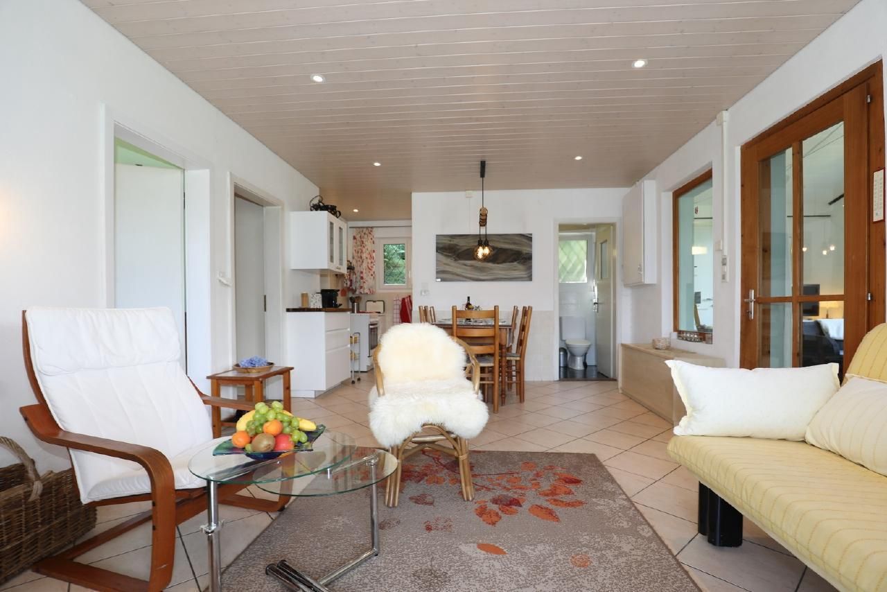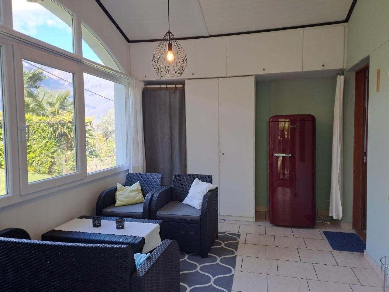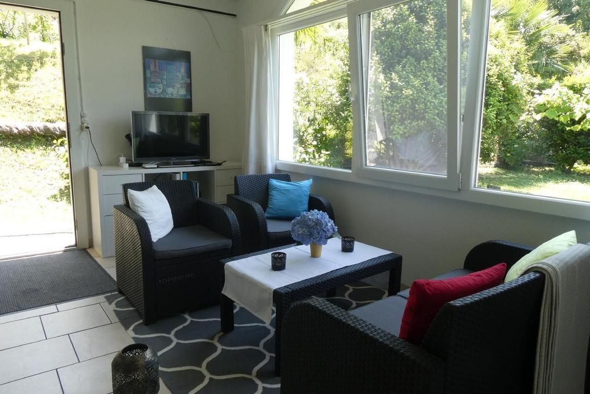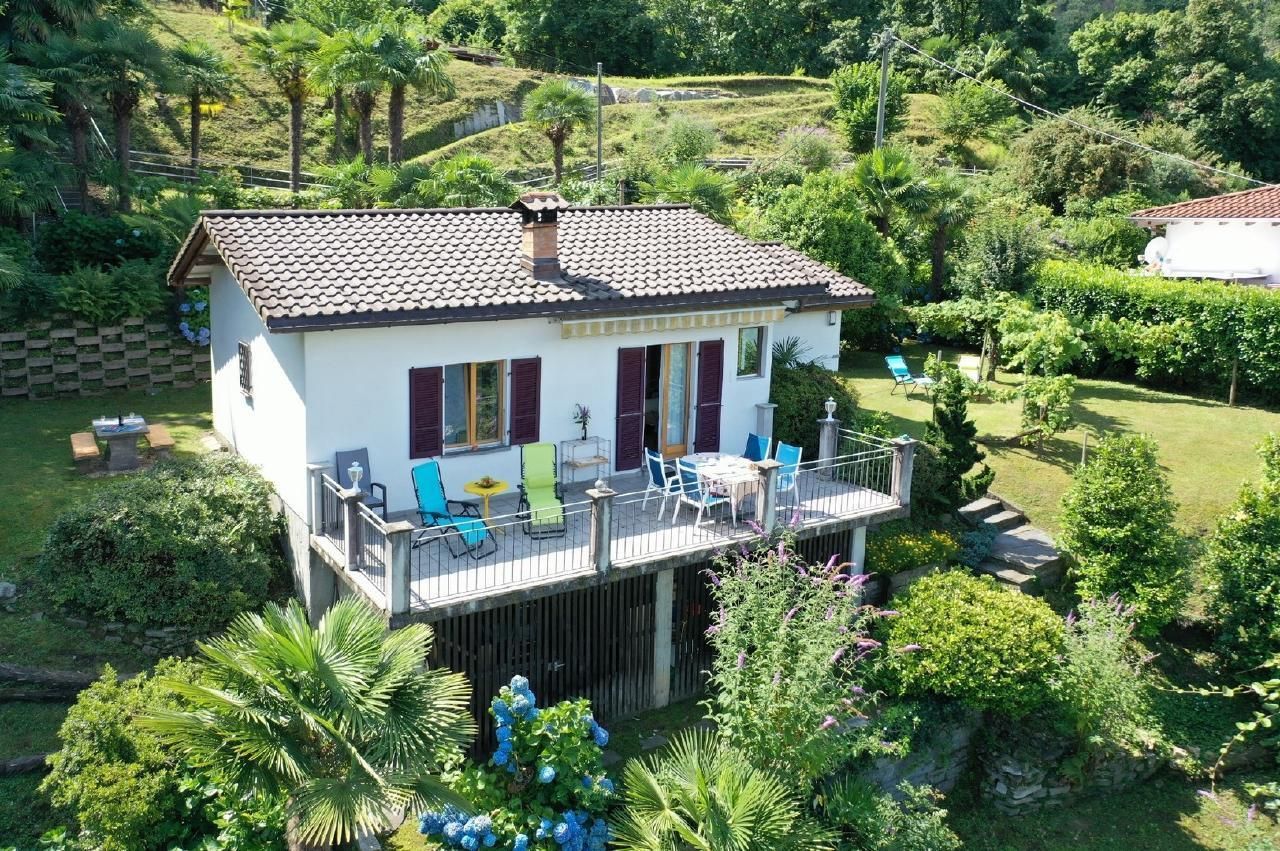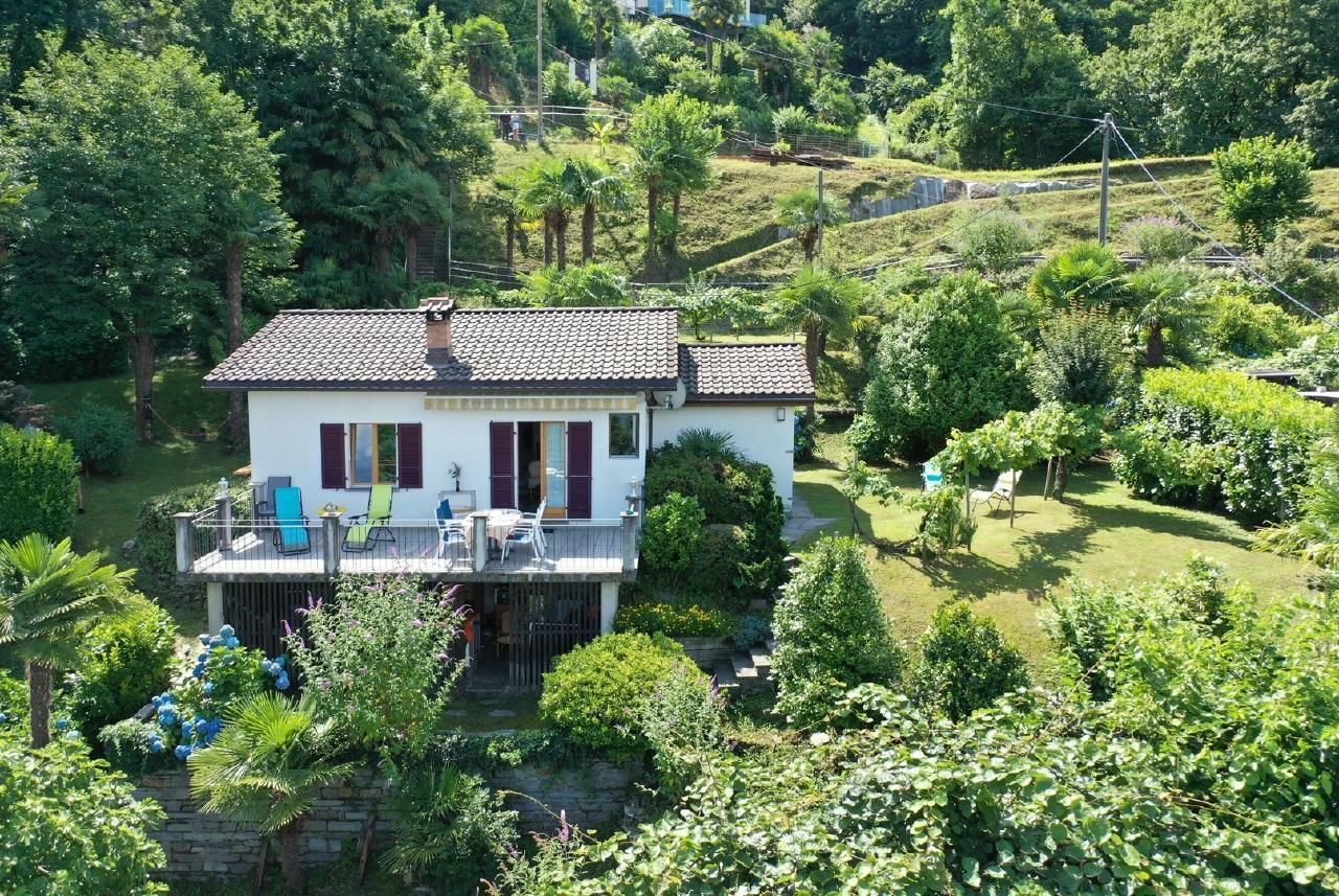 Das freistehende Ferien-Einfamilienhaus in toller Lage bietet herrlichen Blick auf See, Berge, die Brissago-Inseln und das gegenüberliegende Ufer des Lago Maggiore. Es befindet sich nahe der Landesgrenze zu Italien, ca 70m über dem Lago Maggiore und ist der perfekte Rückzugsort in wunderschönem, gepflegten Garten. Vom Parkplatz führt eine Treppe zum ausgedehnten Grundstück, das am Waldrand, von Wiesen, Reben und Palmen umgeben, in idyllischer, ruhiger Lage liegt. Das Anwesen erstreckt sich über drei Geländeterrasse und ist auch für Kinder ungefährlich. Eine 30m2 grosse sonnen- und regengeschützte Terrasse gewährt viel Platz und traumhafte Aussicht. Obwohl das Haus über ein grosses Bettenangebot verfügt (Schlafzimmer: 2 Betten, Kinderzimmer: 1 Etagenbett, 3. Zimmer: komfortabel breites Bett (120x200), Wohnzimmer: ausziehbares Bettsofa (140x200), bietet es mit seiner freundlichen und zweckmässigen Möblierung eine gemütliche Atmosphäre auch für kleine Familien.