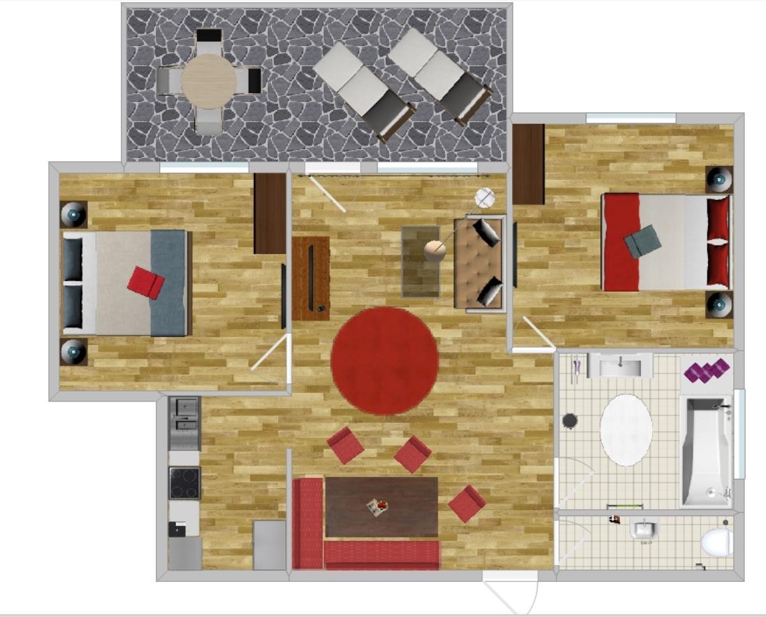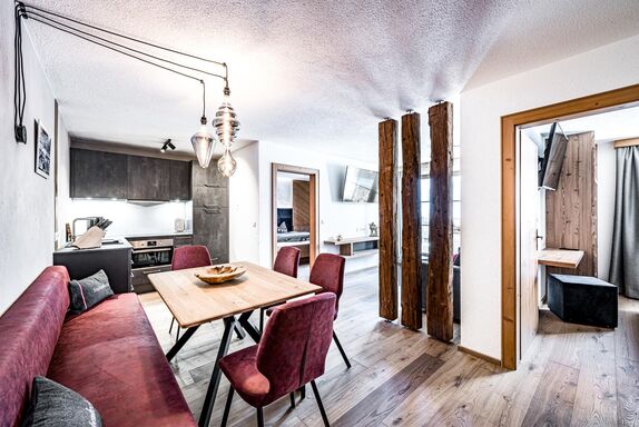 Unser Appartementl ist 72 m² groß und verfügt über: 2 Schlafzimmer; 1 Doppel-Schlafsofa; Wohnküche mit Sitzecke, Küchenbereich mit E-Herd und Backofen, Kühlschrank mit Gefrierfach, Geschirrspüler, Wasserkocher, Kaffeemaschine, usw) und Flat-TV; 1 Badezimmer mit Badewanne, seperates WC;1 Badezimmer mit Dusche und WC; Haarfön; Südwestbalkon mit Ausblick auf die umliegenden Berge.