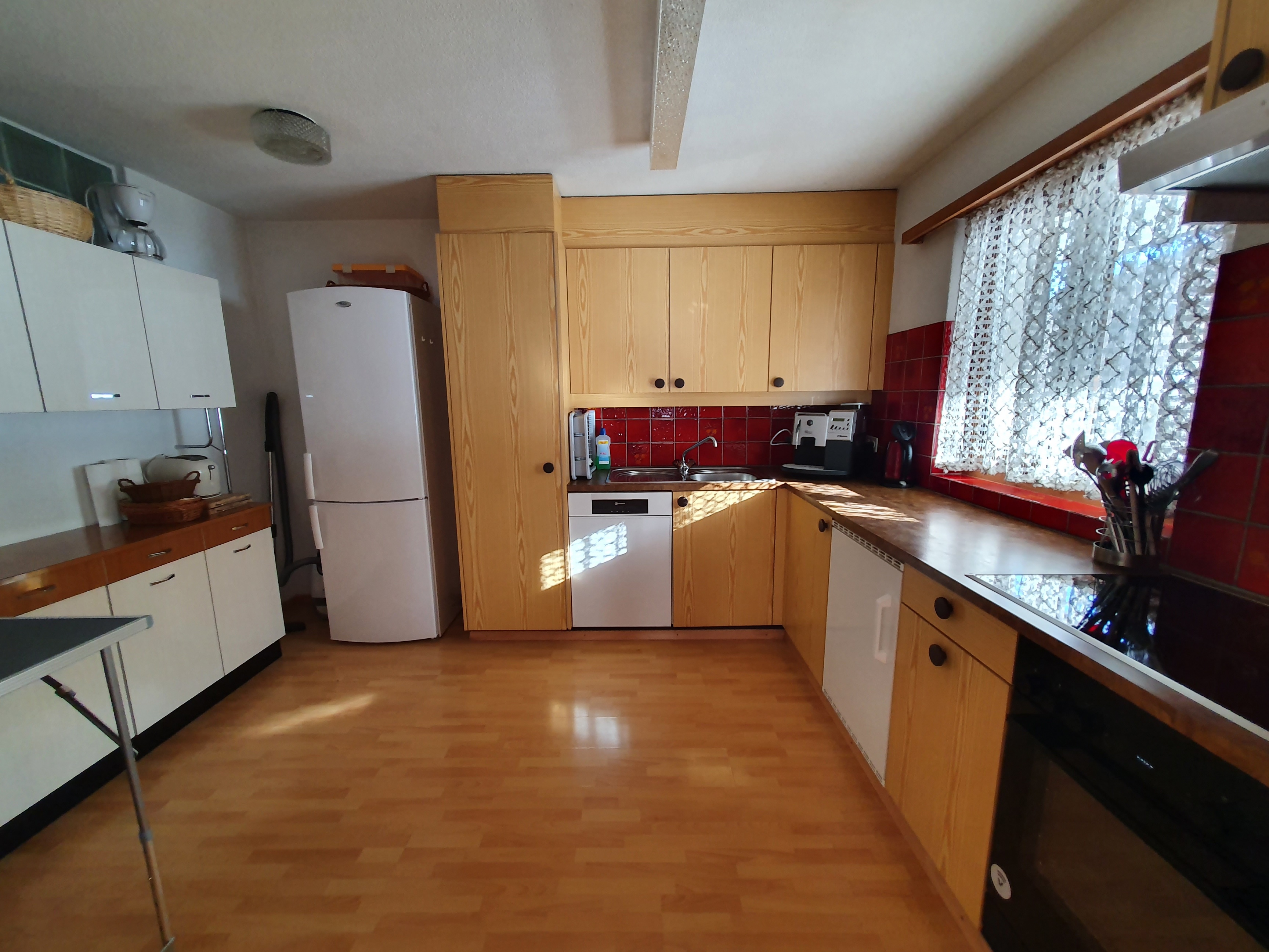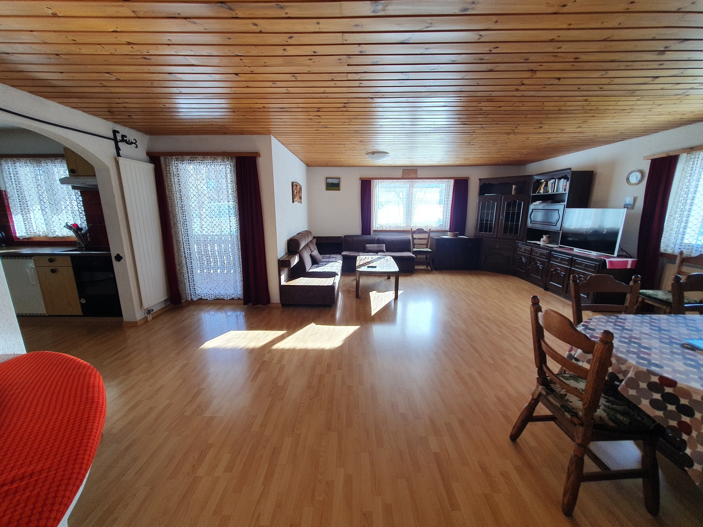 Die grosse Ferienwohnung (100m2) hat eine grosszügige Küche, grosses Wohnzimmer mit sämtlichem Komfort, Kühl- und Gefrierschrank, 2 Kaffeemaschinen (Bohnen- und Filter), TV, sonnige Terrasse und hat zwei Doppelzimmer für insgesamt 4 Personen. Öffentlicher Bus und Abfahrtspiste im Winter endet vor dem Haus.