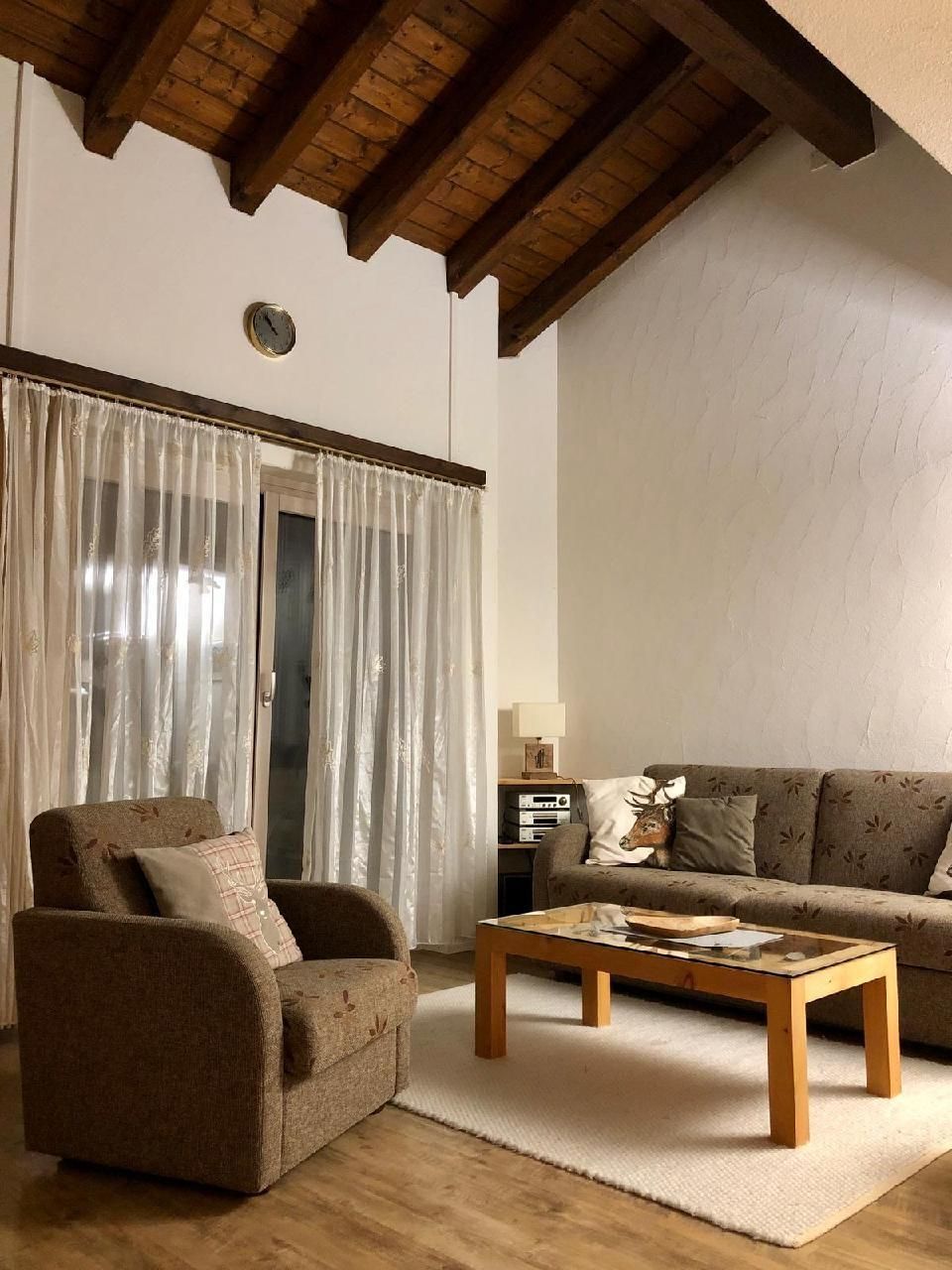 Die Duplex-Wohnung im 1.Obergeschoss verfügt über ein gemütliches Wohnzimmer mit Essecke, gut eingerichteter offene Küche (4 Plattenherd, Backofen, Kühlschrank mit Gefrierfach, Geschirrspülautomat), Schränke, Bad/WC, Balkon mit herrlicher Aussicht. Eine Holztreppe führt zur Galerie, welche mit einem Doppelbett und Schränken ausgestattet ist.