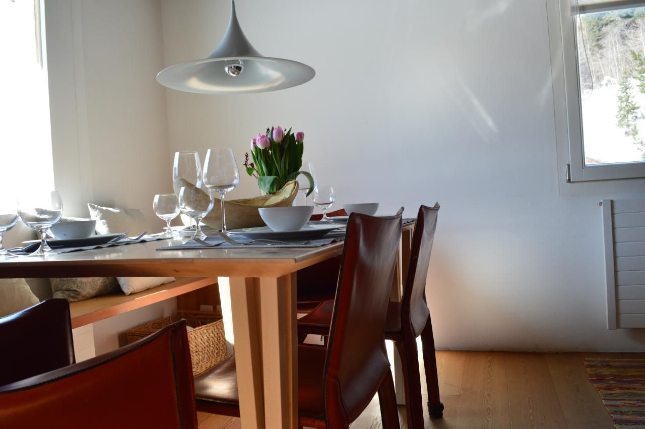 Es handelt sich um eine geschmackvoll möblierte 3.5 Zimmer-Galerie-Wohnung in einer Appartement- Siedlung in La Punt Chamues-ch an einer ruhigen und sehr sonnigen Lage mit unverbaubarer Aussicht. Die Wohnung im Galeriegeschoss verfügt über ein gemütliches Wohn- und Esszimmer, Cheminée, gut eingerichtete offene Küche, ein Doppelschlafzimmer mit ensuite Dusche/WC, Bad/WC. Holztreppe zur Galerie mit 3 Einzelbetten und Schränke, Balkon mit Gartenmöbeln, Autoeinstellplatz. *4 Plattenherd, Backofen, Kühlschrank mit Gefrierfach, Geschirrspülautomat Hunde nur auf Anfrage. Über Weihnachten & Neujahr nur 2-Wochen Vermietung.