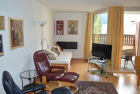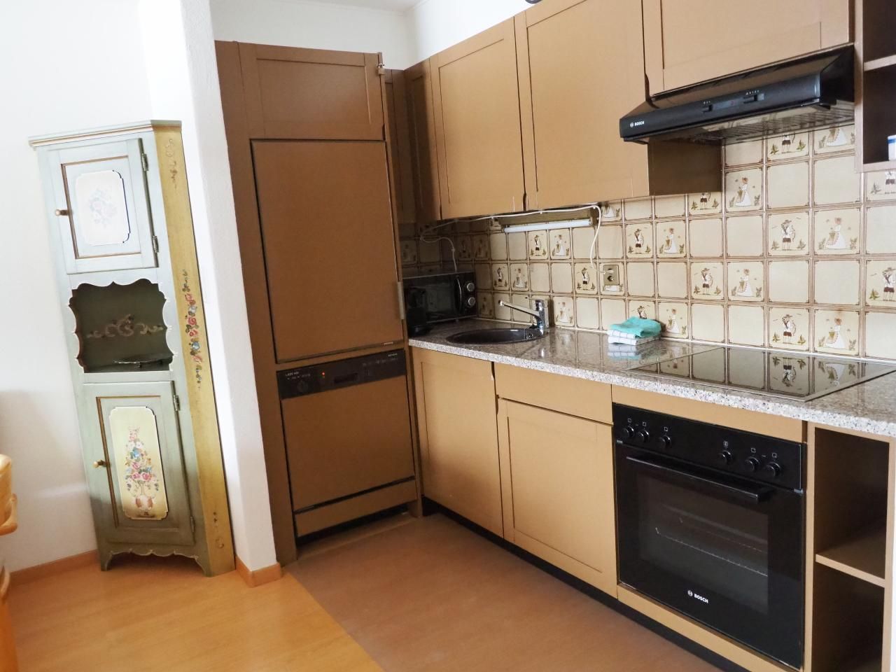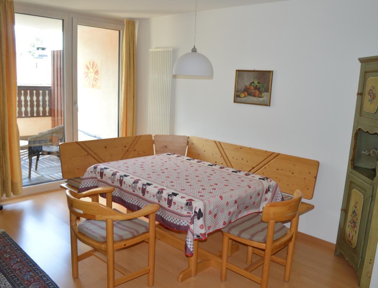 Es handelt sich um eine geschmackvoll möblierte 2 Zimmer-Hochparterre-Wohnung mit Balkon in einer Apartment- Siedlung in La Punt Chamues-ch an einer ruhigen und sehr sonnigen Lage. Die Wohnung im Hochparterre verfügt über ein gemütliches Wohn- und Esszimmer, gut eingerichtete offene Küche, ein Doppelschlafzimmer, Bad/WC, Balkon, Autoeinstellplatz. *4 Plattenherd, Backofen, Kühlschrank mit Gefrierfach, Geschirrspülautomat