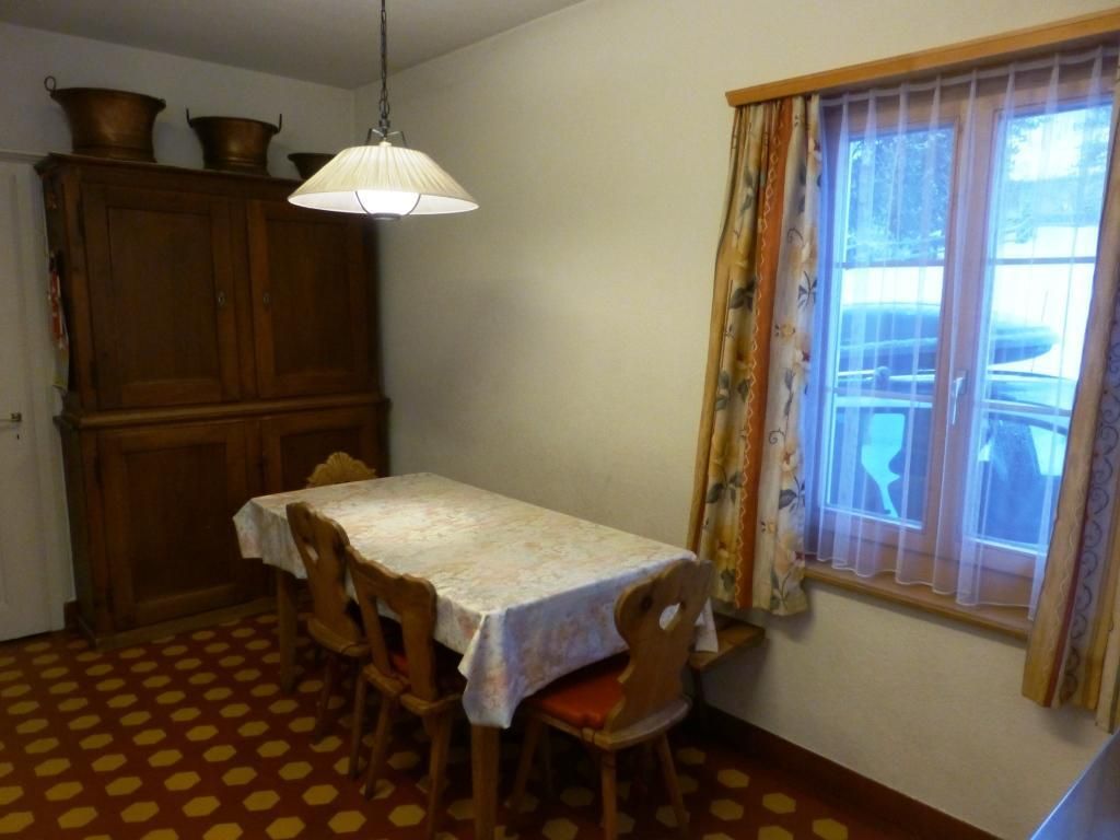 Sonstige Kücheneinrichtung (Küche1): Sehr grosse Küche mit Esstisch für bis zu 8 Personen, Sicht auf Piz Palü und auf die Languardwiese mit der Kirche Santa MariaFondue Set oder Raclette auf Nachfrage