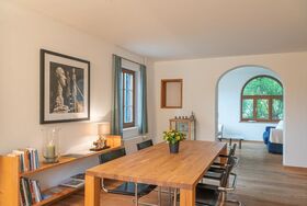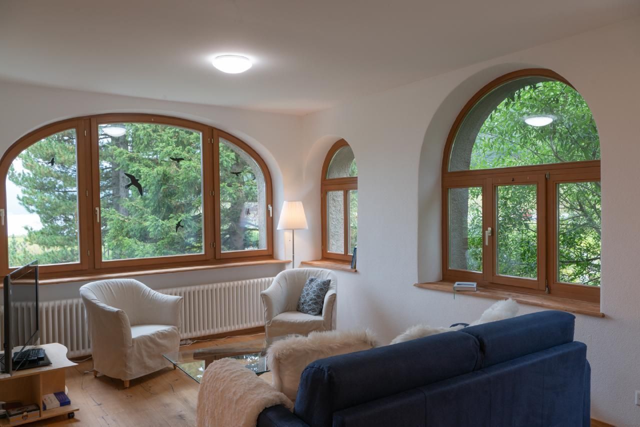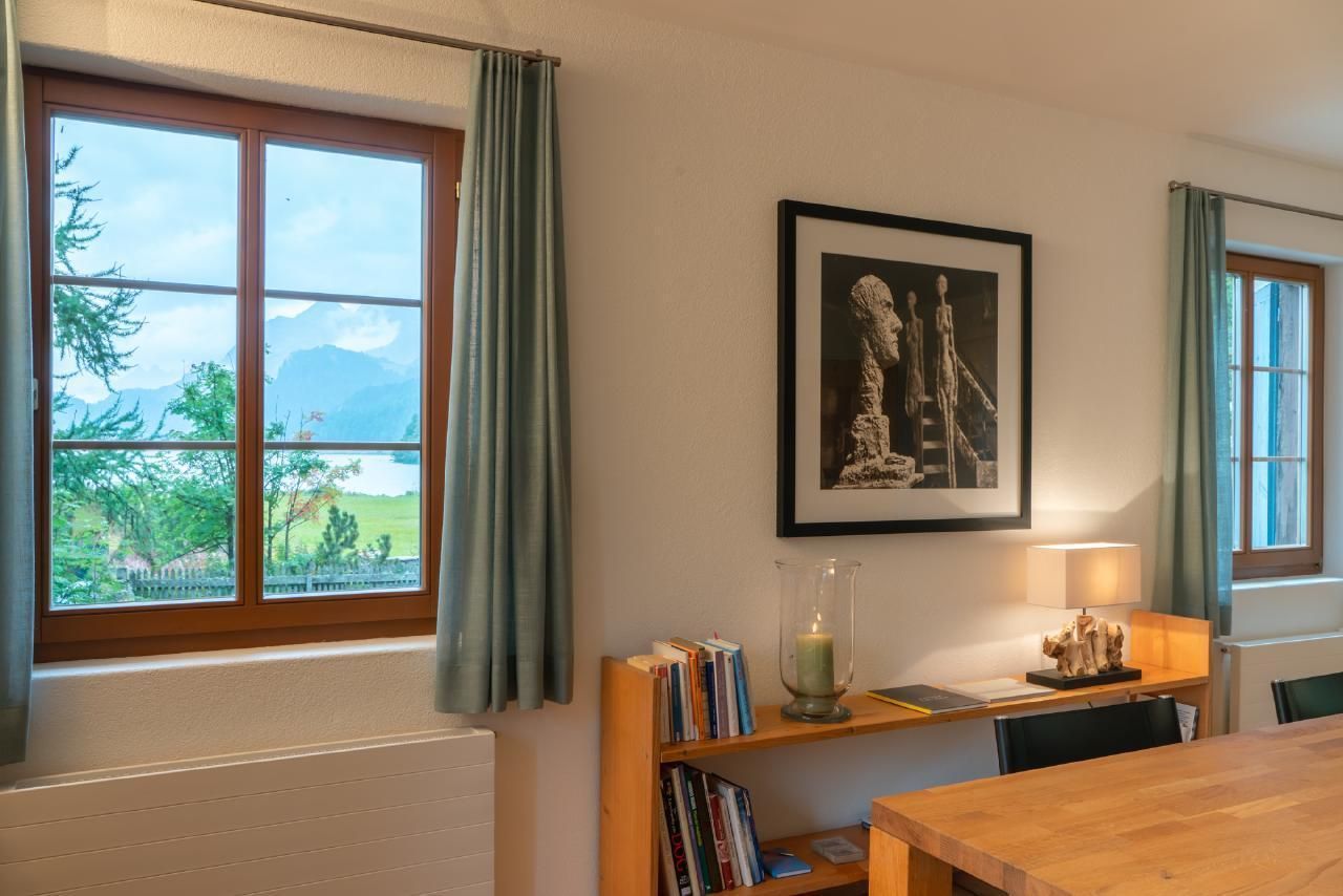Und es ist dieser Blick, der für sich alleine spricht... auf den Silsersee und auf die umliegenden Berge! Die Chesa Clos erfüllt den Wunsch nach der Nähe zum See und nach einer unverbauten Aussicht. Man verweilt auch gerne zuhause, im Garten oder im Wohnraum mit grossen Fenstern. Die Wohnung befindet sich im Dorfteil Sils Baselgia.