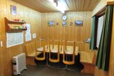 Die Hütte Ova Spin verfügt über zwei Schlafzimmer (zwei Einzelbetten und vier Einzelbetten), einer Küche, ein Esszimmer, WC mit Waschmöglichkeit, Dusche, Vorraum und Abstellraum.