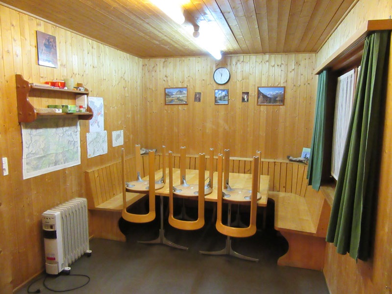 Die Hütte Ova Spin verfügt über: 1 Schlafzimmer mit 2 Einzelbetten (ca. 7 m2), 1 Schlafzimmer mit 4 Einzelbetten (ca. 16 m2), Küche (ca. 6 m2), Esszimmer mit Eckbank (ca. 12 m2), WC mit Waschmöglichkeit (ca. 6 m2), Dusche (ca. 3 m2), Vorraum/Gang (ca. 6 m2), und Abstellraum (für Lebensmittel, Schuhe, Ski, Fahrrad usw.) (ca.10 m2), Parkplatz vor dem Gebäude. Vorhanden ist unter anderem: elektrischer Strom, Ölheizung, Wäsche (für Bett, Küche und Bad), Geschirr uva.