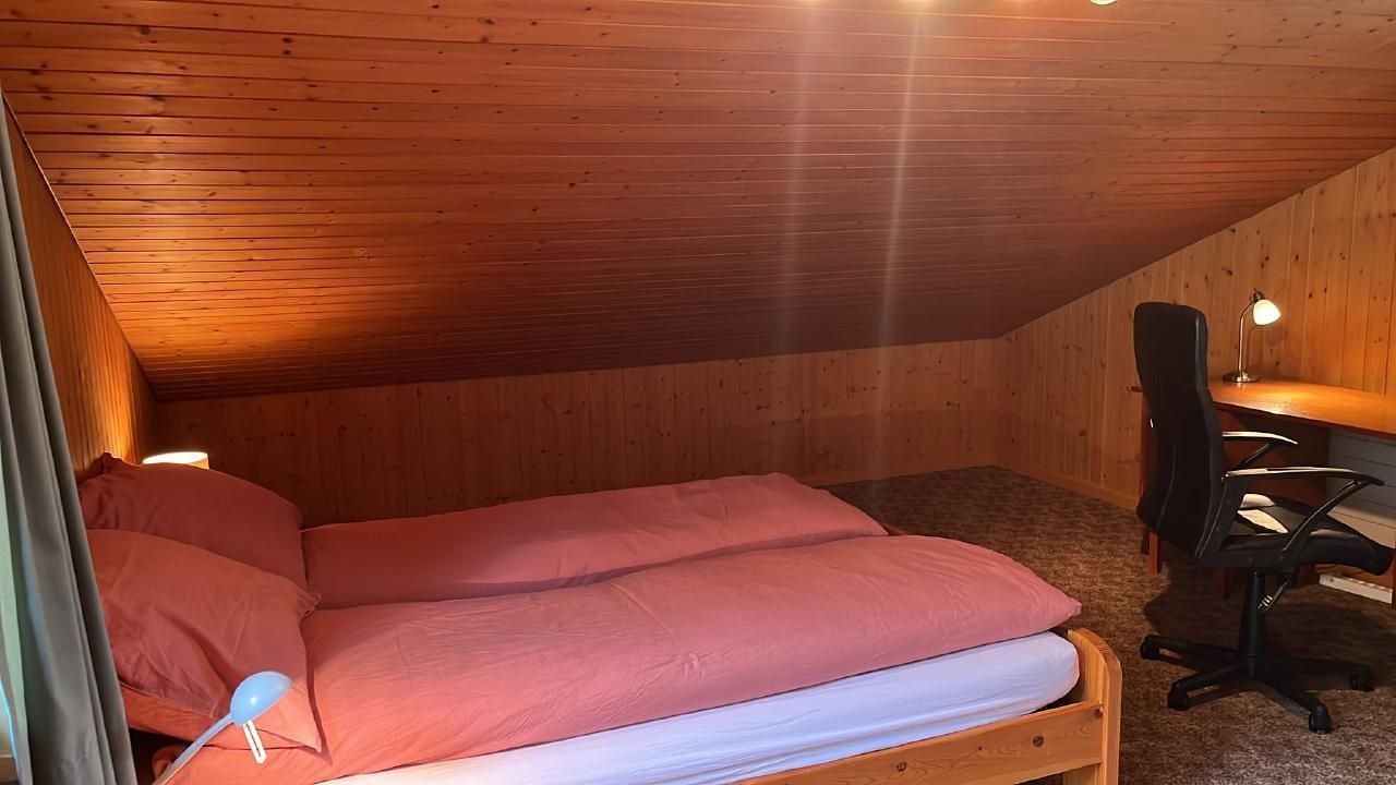 Zwei grosse Schlafzimmer mit Doppelbetten und ein Kinderzimmer mit einem Doppelstockbett. Wohn-/Esszimmer, Spielzimmer, Küche, Bad mit Dusche und Badewanne, Wifi, Fernseher, Aussenterrasse, Zentralheizung. Schreibtisch mit Bürostuhl für die Verwendung mit einem Laptop.