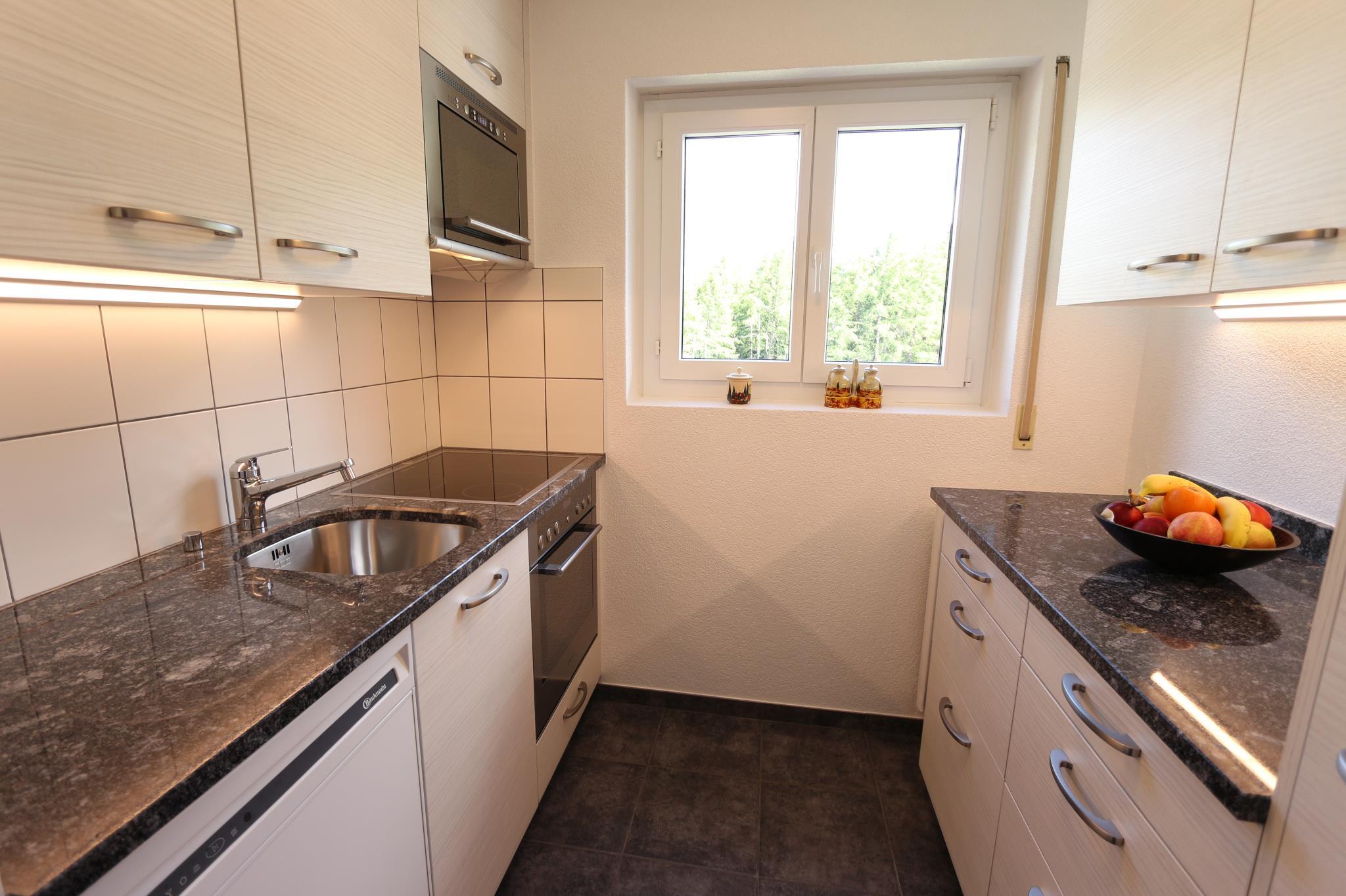 Sehr geräumige und neu renovierten 3-Zimmerwohnung (72 m2), 1. Stock, 2 Doppelschlafzimmer, 1 Schlafzimmer mit Waschbecken und eigener Ostbalkon mit freier Aussicht, grosses Wohnzimmer mit Doppelschrankbett sehr bequem, Polstergruppe, Essecke, grosser Flachbild Satelliten-TV, DAB-Radiowecker mit Bluetooth, Gratis WLAN. modernes Badezimmer mit Bad/Dusche/WC und Haartrockner. Neue moderne Küche mit Geschirrspüler, Umluftofen, Keramik Kochherd, Mikrowelle, Kühlschrank mit Gefrierfach, Kaffee-Filtermaschine, Wasserkocher, Handmixer, Toaster usw. Grosser Balkon mit freier Aussicht auf dem Osten, möbliert.