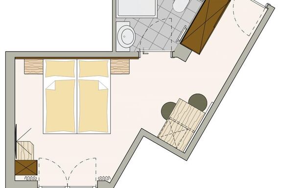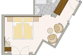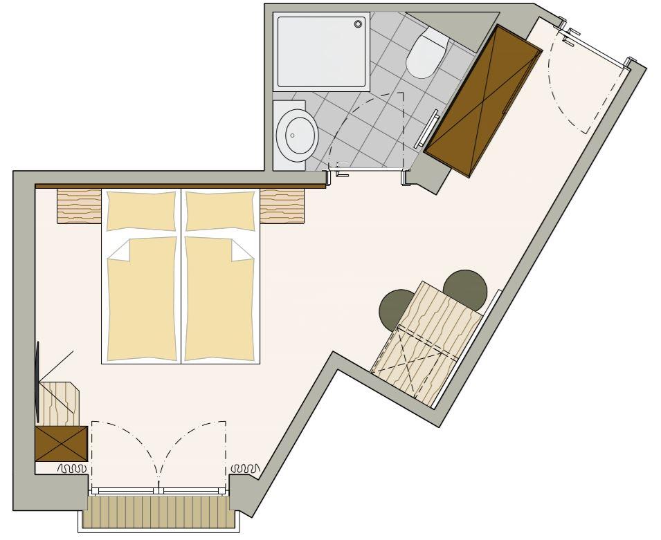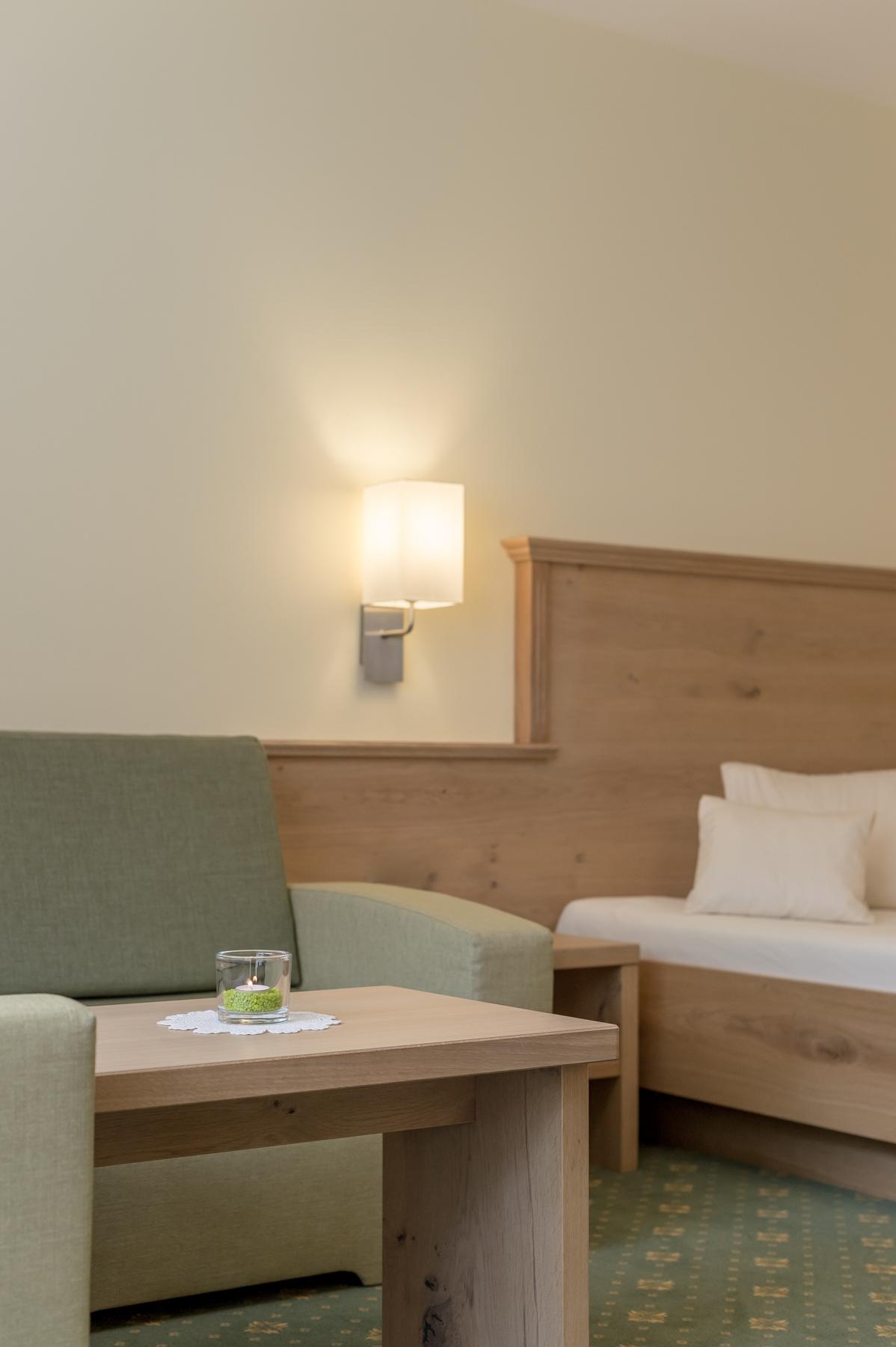 Unser exklusives Doppelzimmer (25 m2) im modernen alpinen Stil ist ausgestattet mit Dusche/WC, Vanity-Set, Fön, Handtuchwärmer, Safe, kostenloser WLAN Zugang, Flat-TV, Anti-Allergie Bettwäsche, Schreibtisch, französischer Balkon sowie gemütlicher Sitzecke (Möglichkeit für 1 Zusatzbett) sowie traumhaften Bergblick.